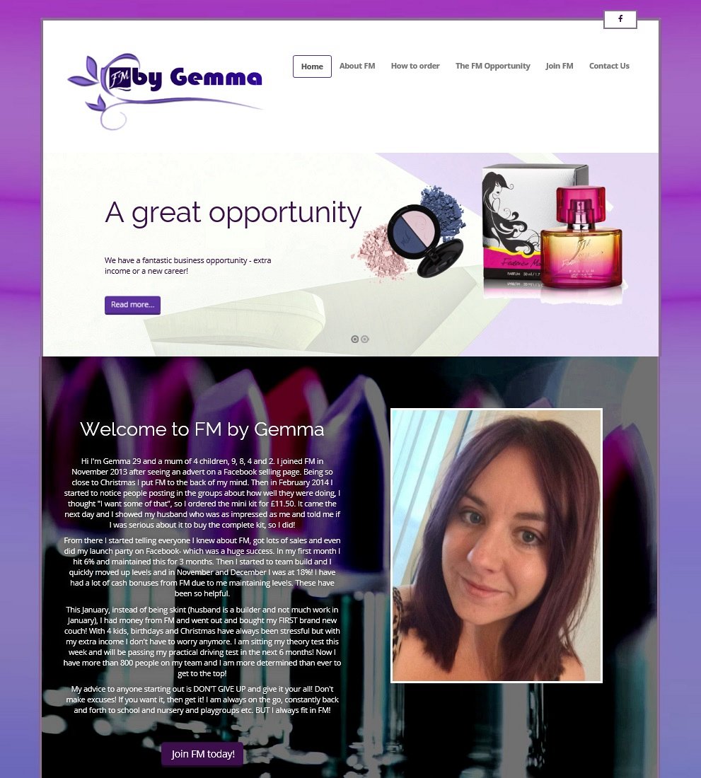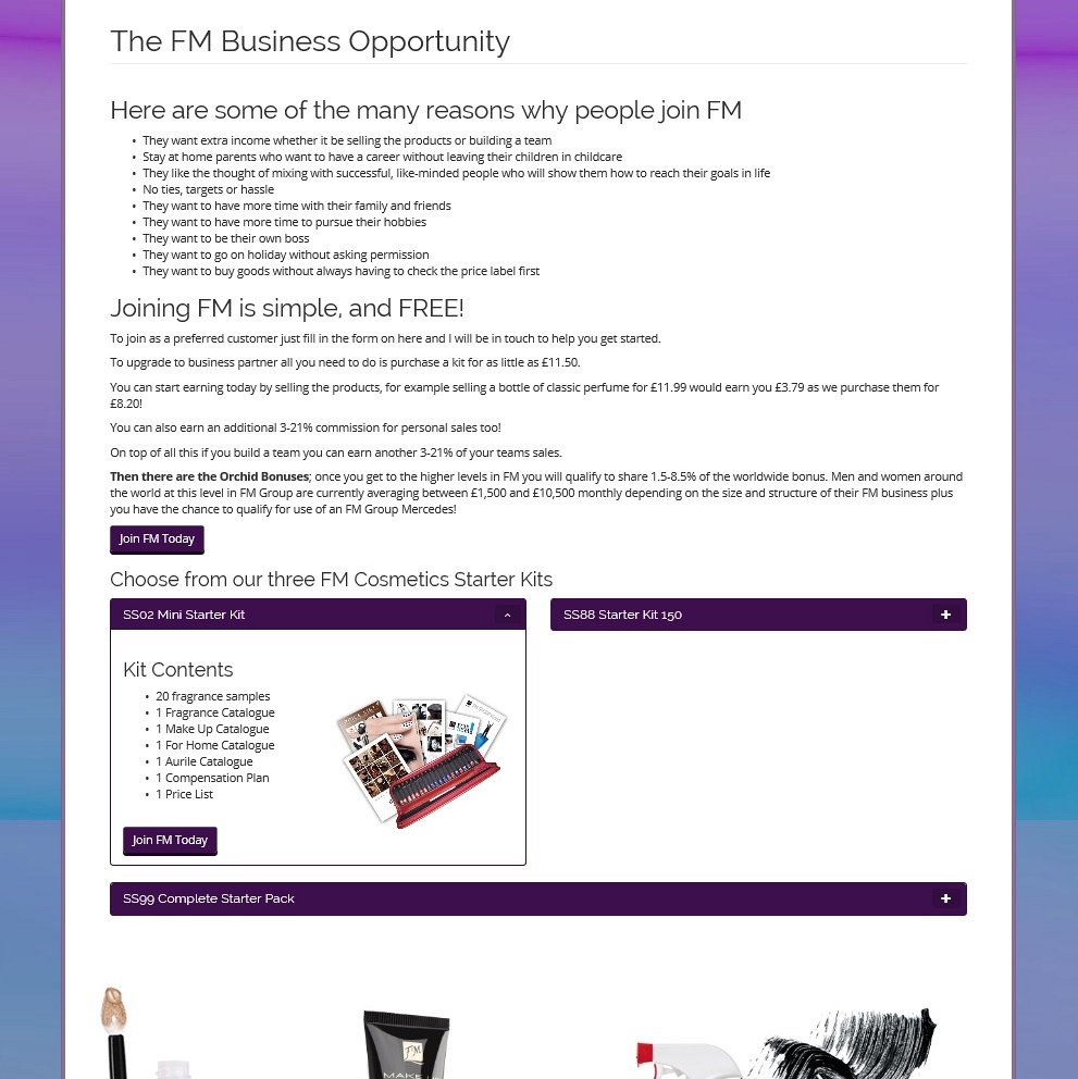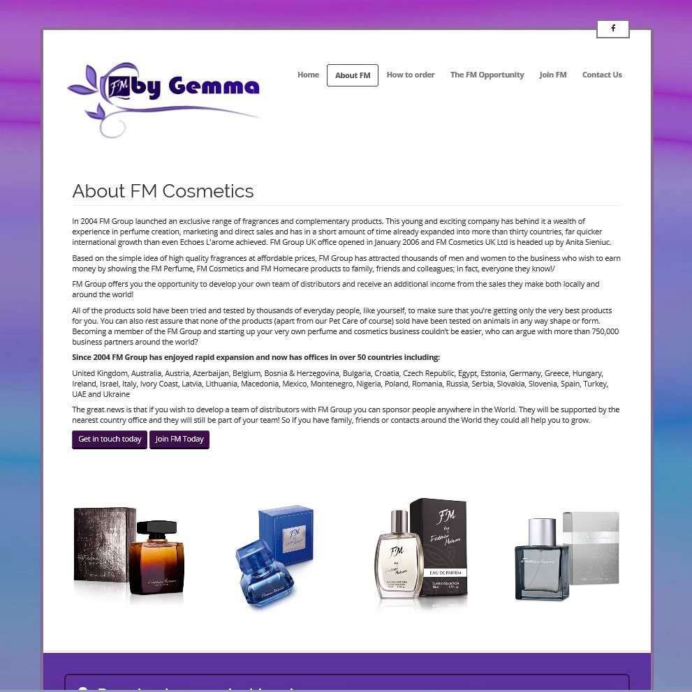 Gemma approached us to create a website design for her FM Cosmetics business. We provided guidance to Gemma on the information we needed to put the website together for her, and integrated a number of design features to highlight the areas of the business and what it can offer both customers and those interested in joining FM themselves.