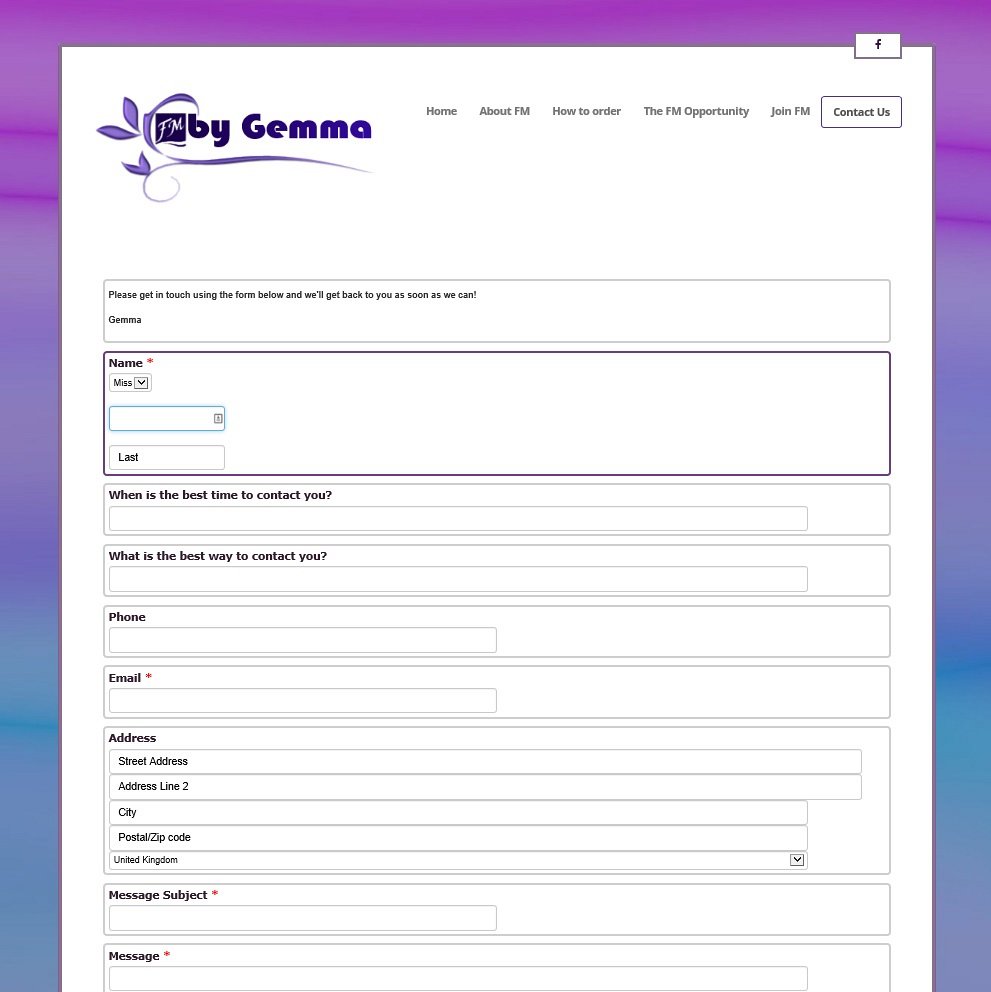 We have integrated a custom online form so people can join Gemma's FM team straight from her website, and included pages to provide information on FM, how to join and also how to order their full range of products through Gemma.