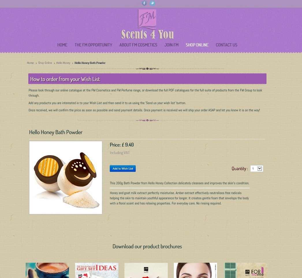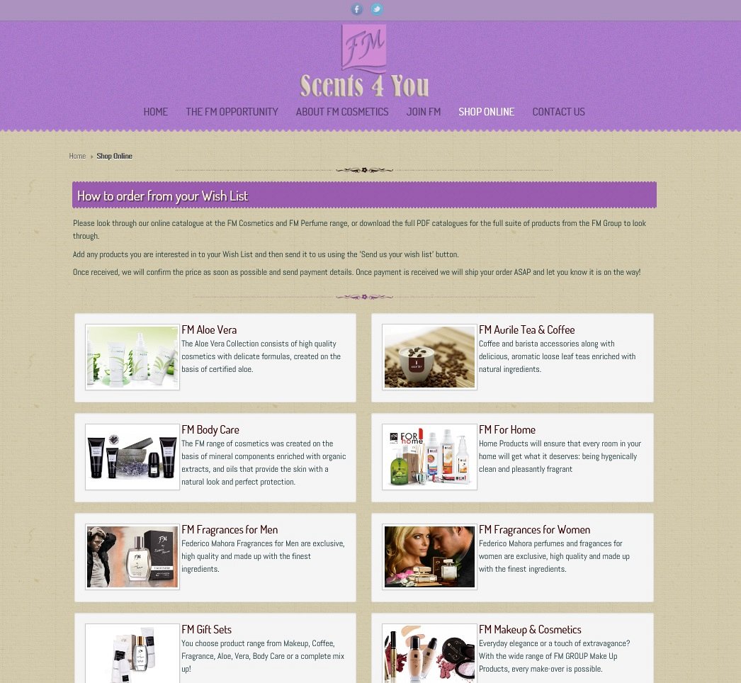 A bespoke Wish List website for FM Scents 4 You, using an single-page checkout/basket solution and a fully responsive website design to ensure great mobile and tablet compatibility.