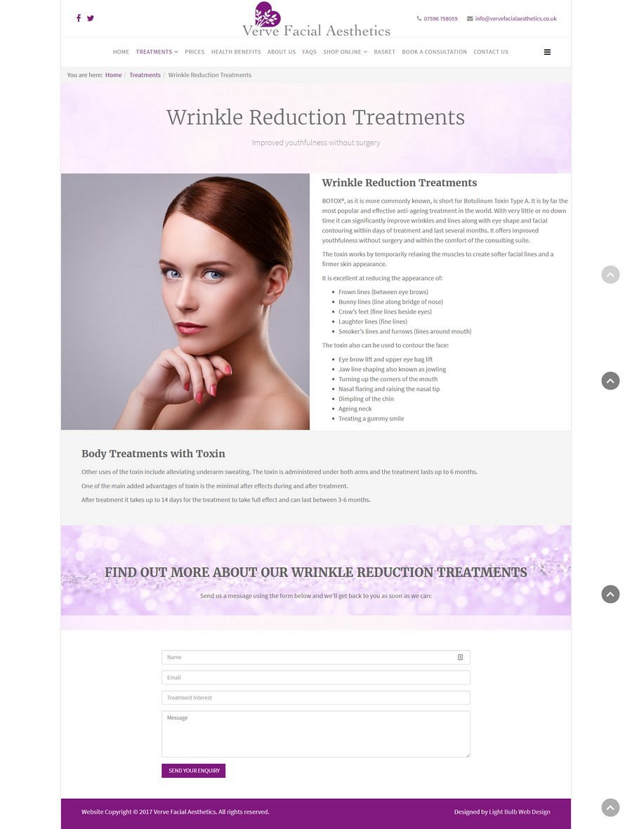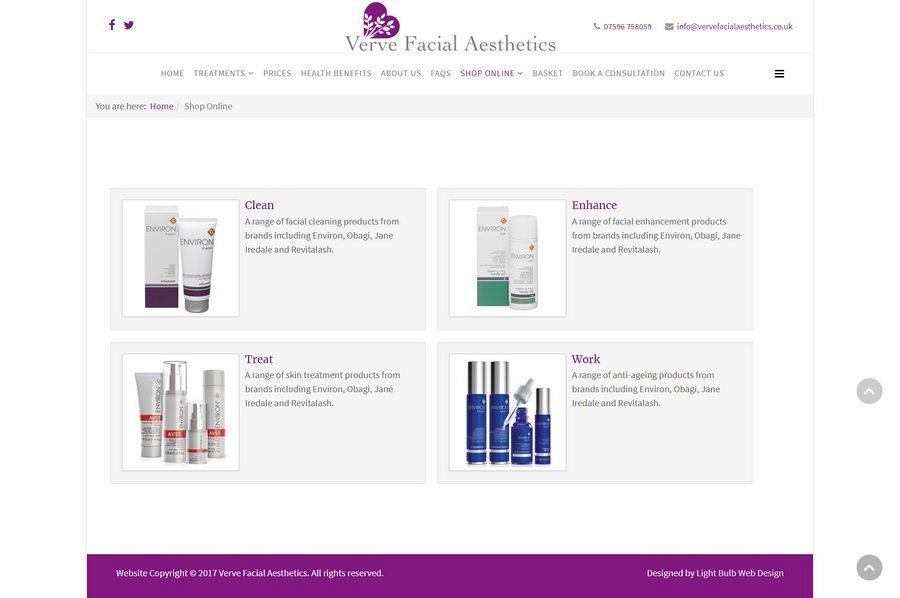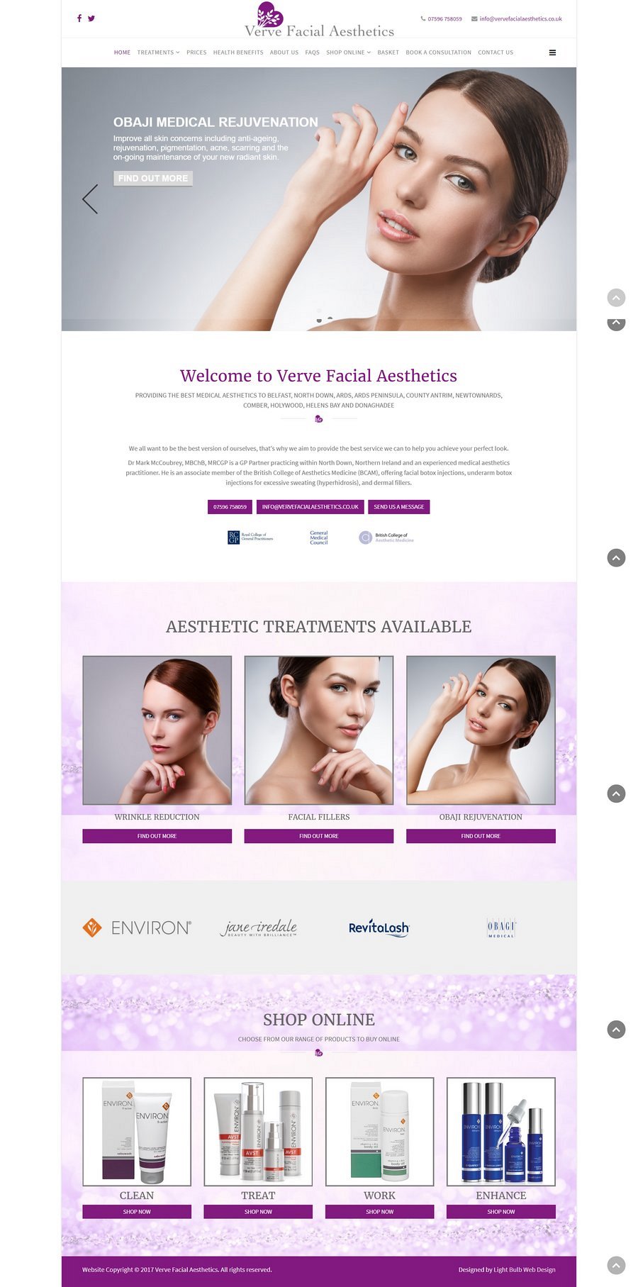 Verve Facial Aesthetics asked us to design them a brand new website, to include both information about their services as well as an easy to use e-commerce platform, supporting Stripe and PayPal online payments.