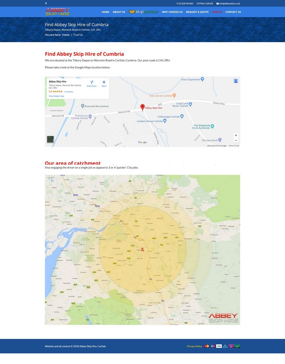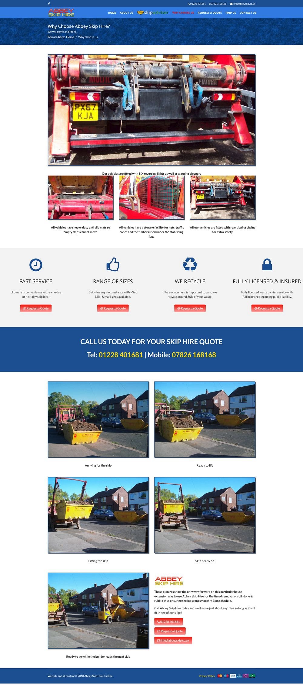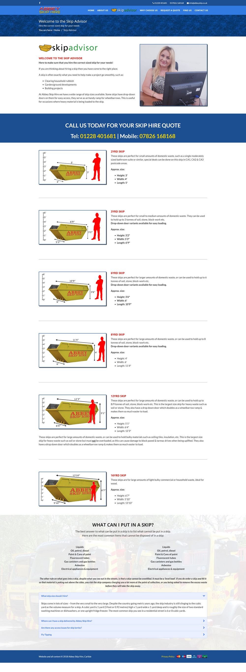 Abbey Skip Hire in Carlisle got in touch after being recommended by another local business - they were initially just wanting someone to take over the hosting and support of their exisitng website, however after some initial discussion and research, it became clear that whilst the website had great search engine results, the design and presentation had loads of room for improvement.