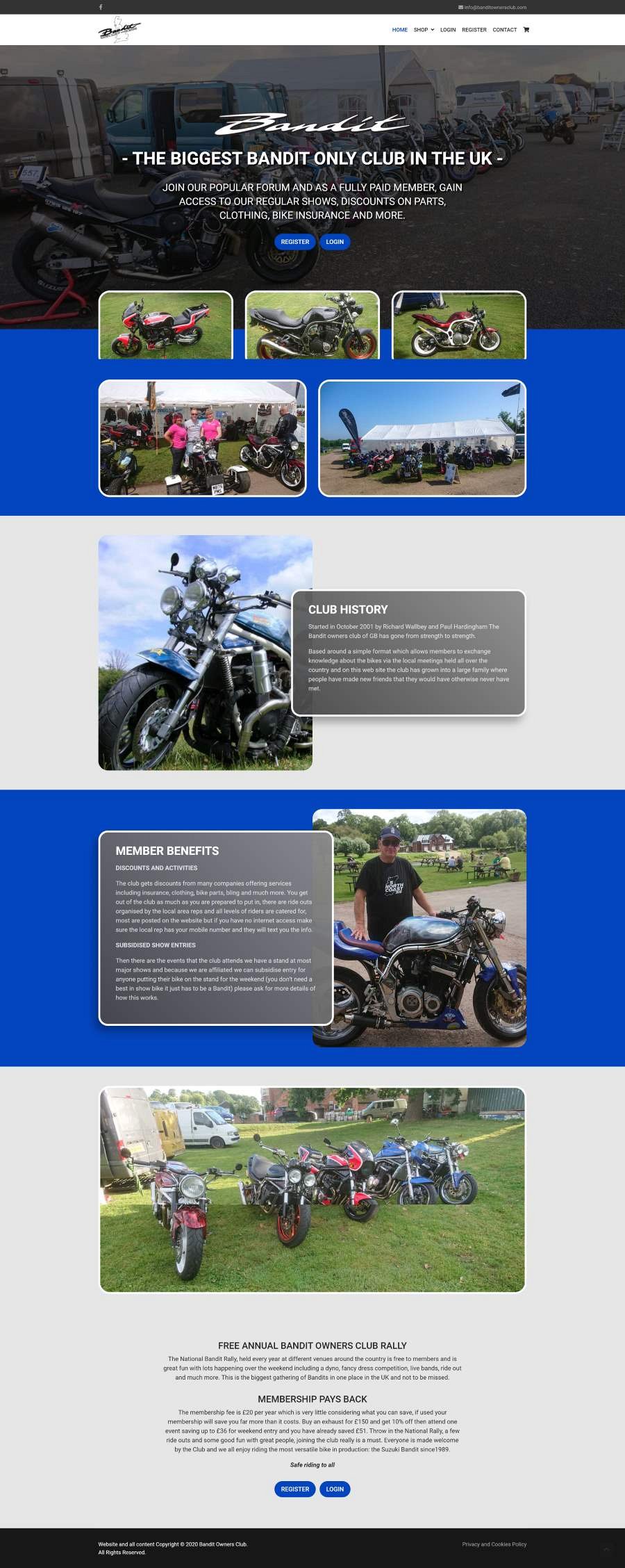 Final work included creating an online shop and a range of informational pages for the club. Free members require access approval by the website owners - they can then choose to pay an annual subscription which automatically gives them full forum access.