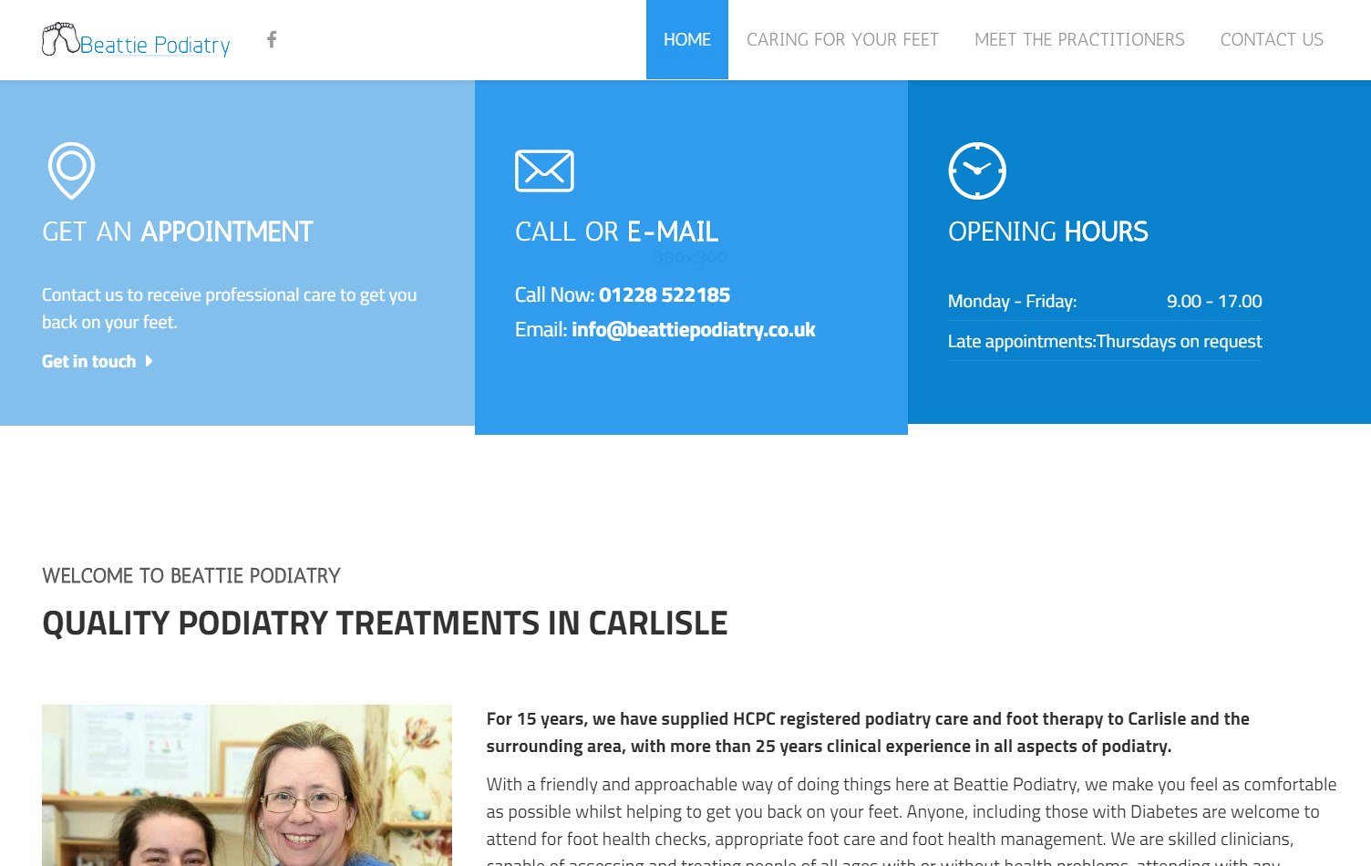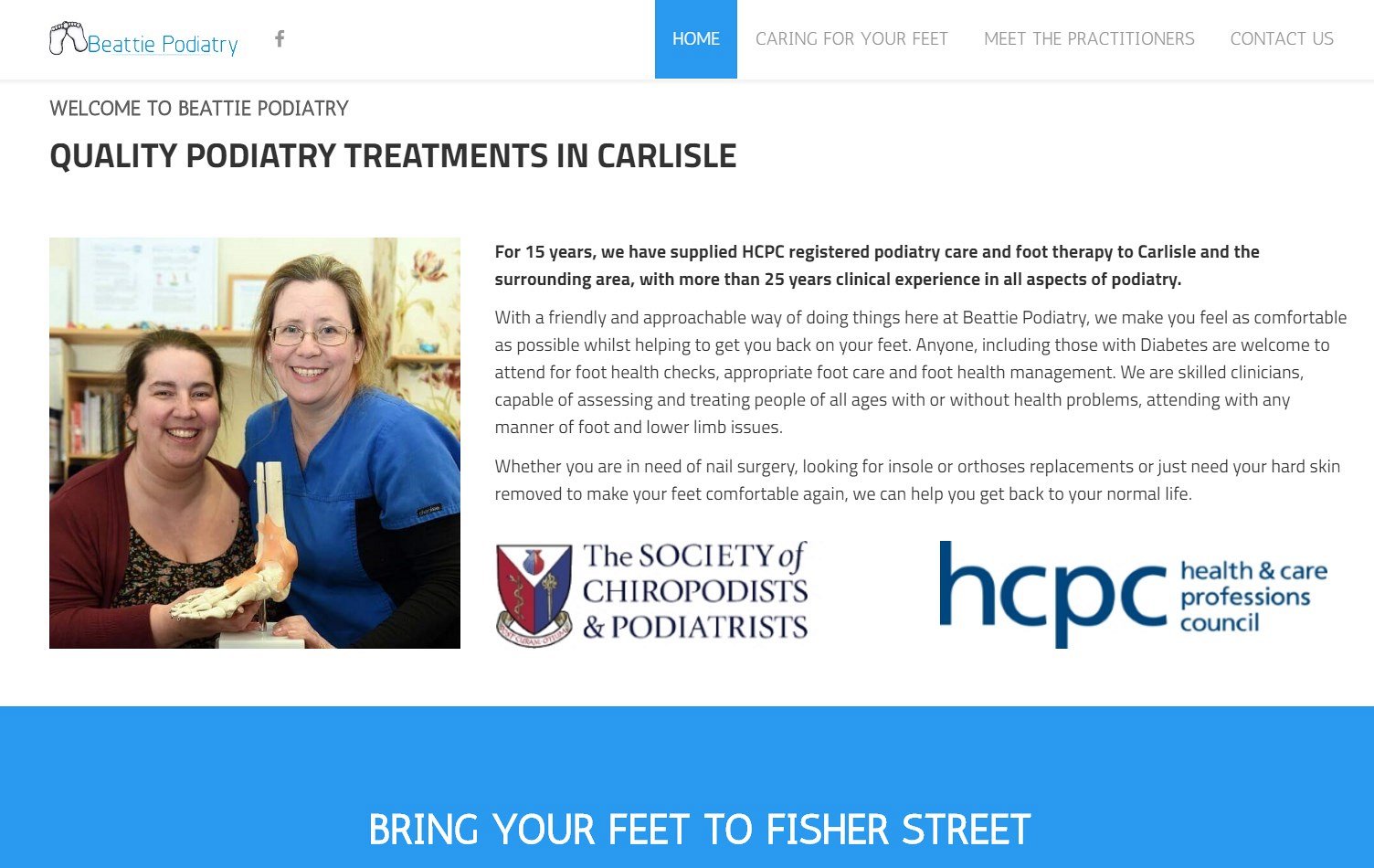 After meeting Beattie Podiatry at a Cumbria Women in Enterprise talk, we looked at their existing website which was created by Yell, and put a proposal together for a new, mobile-friendly design which was more in keeping with their business.