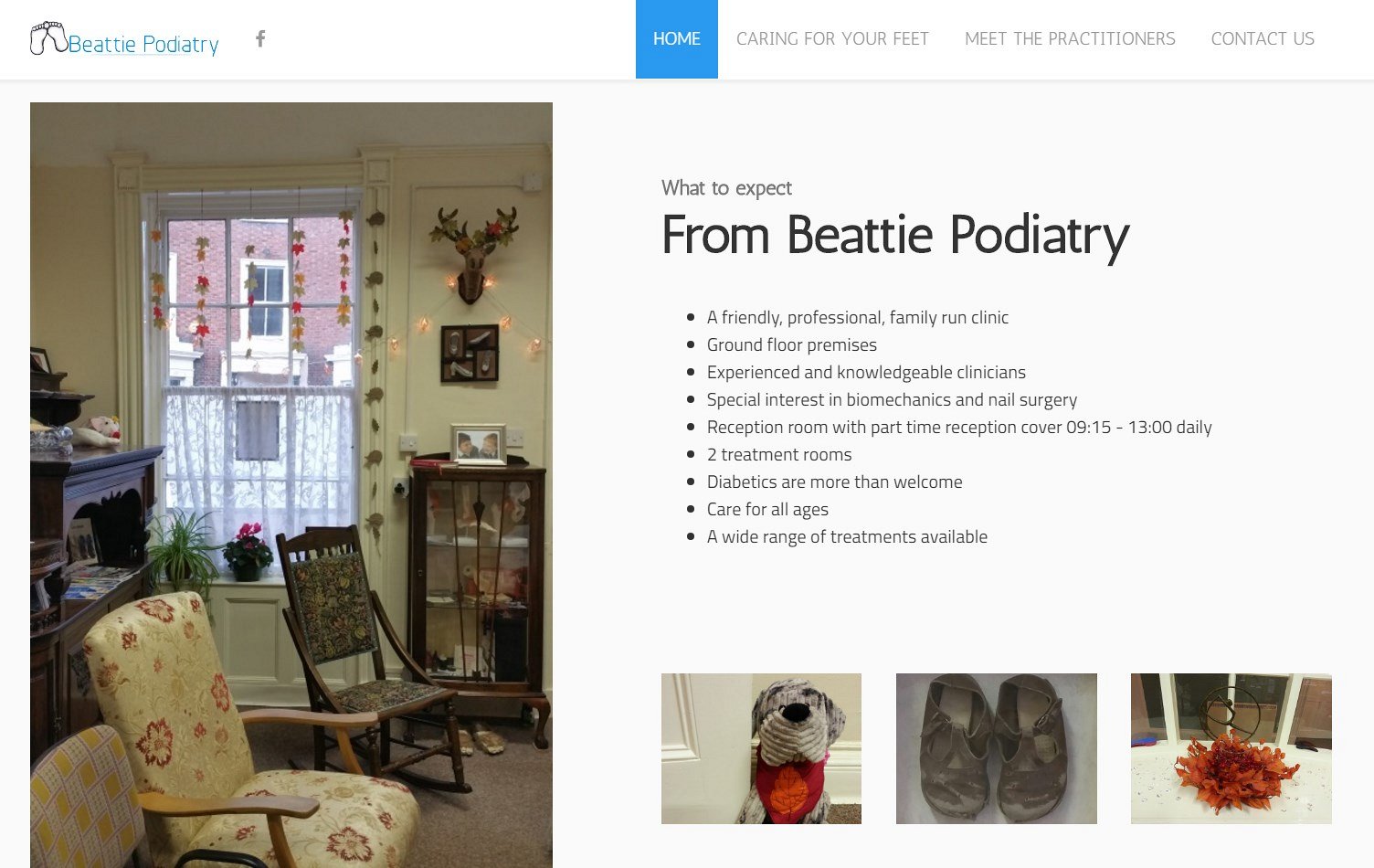 With our standard discount for a website refresh, the new website was more affordable than the Yell provision, and also allowed Beattie Podiatry to have improved customer service and a more prompt turnaround for any changes and updates required. We added a new, shorter domain name, and migrated the old one away from Yell, setting up a 301 permanent redirect to ensure the new website could be found, whatever domain name was visited.