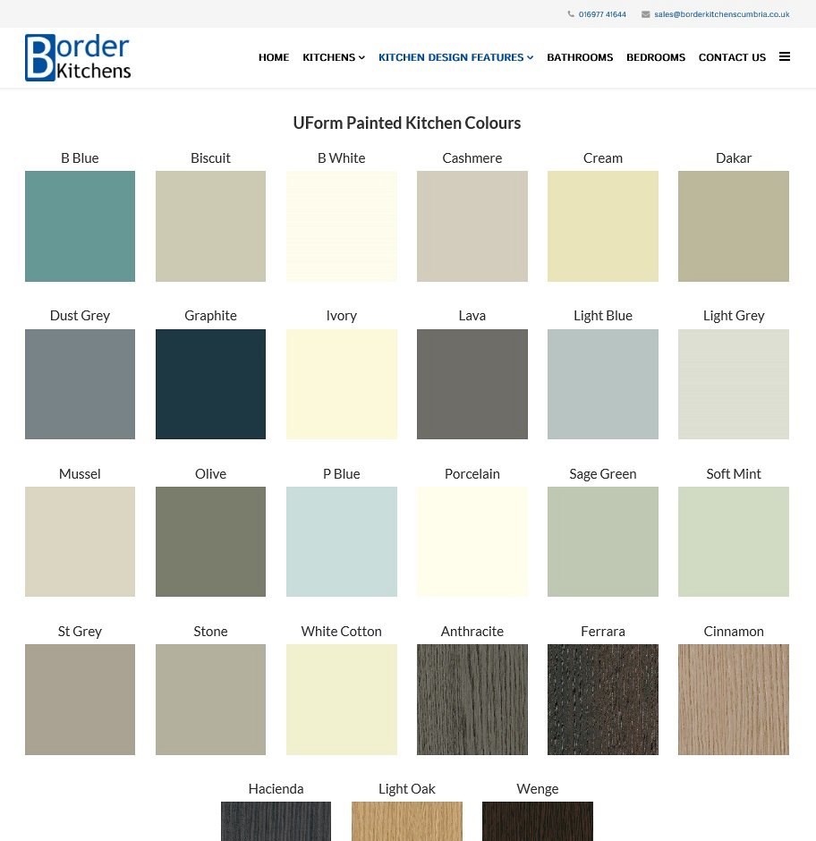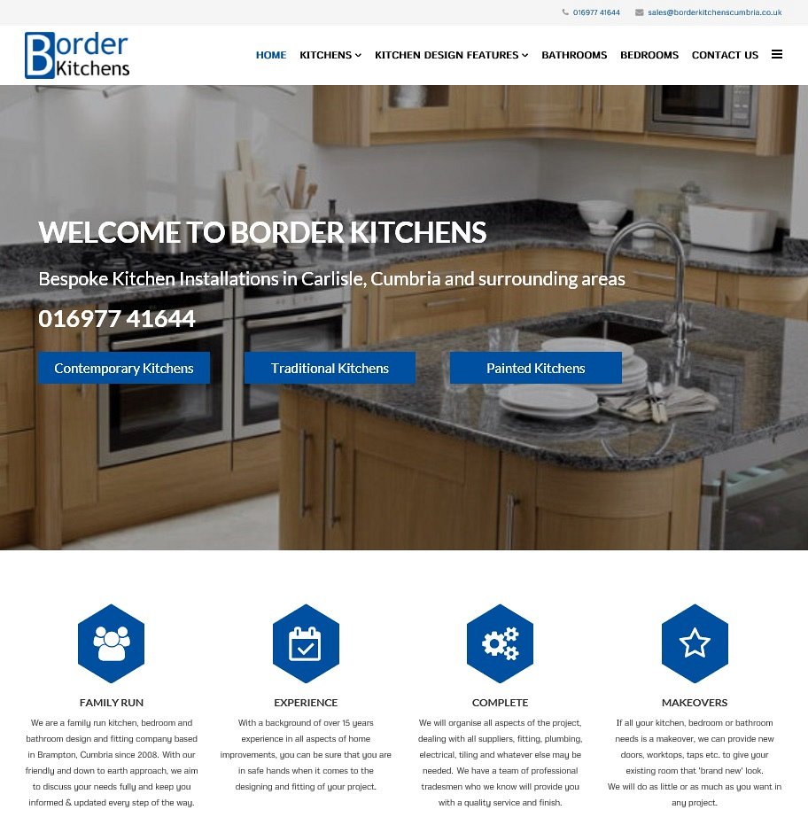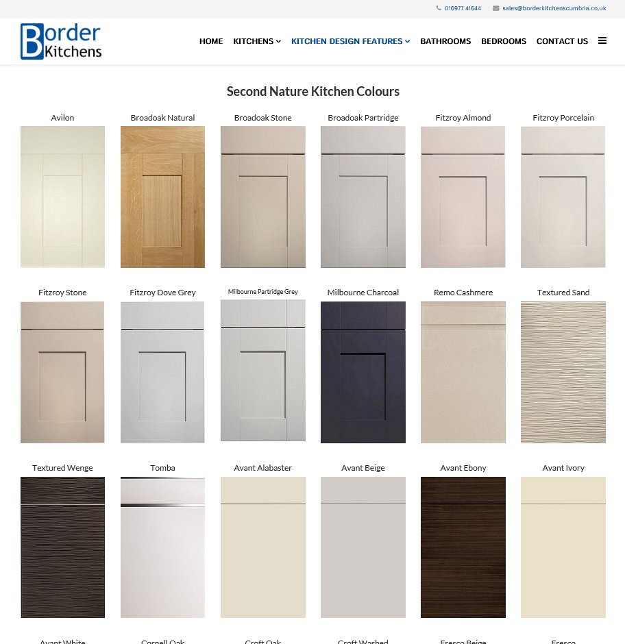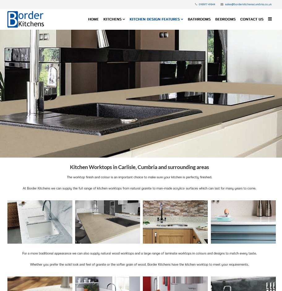 The site has base pages for the main services offered, as well as sub-pages to give more detail on kitchen features such as worktops, door colours and kitchen accessories.