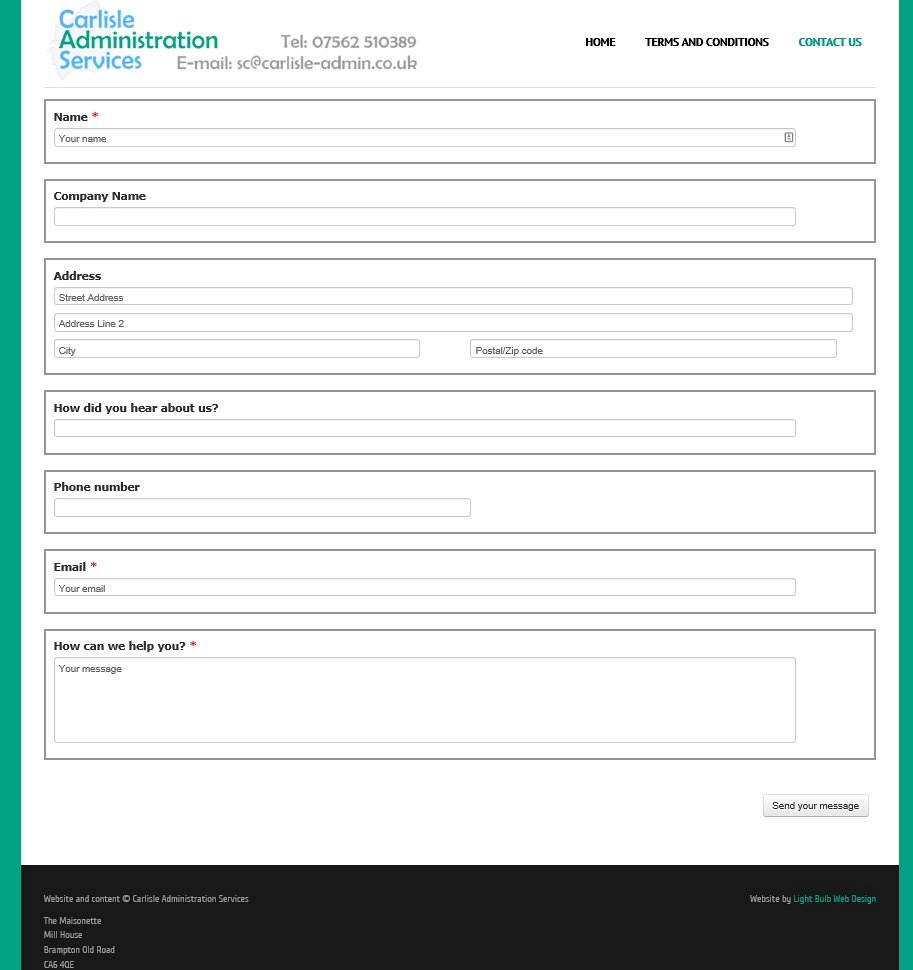 Carlisle Administration Services approached us for creating a small website to introduce their business services. We also created a brand new logo for them and provided a number of variations of the final design for use on Facebook and business cards/stationery as required.