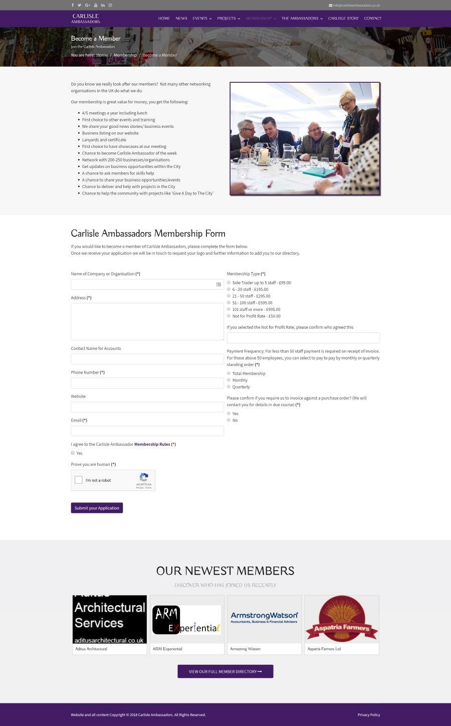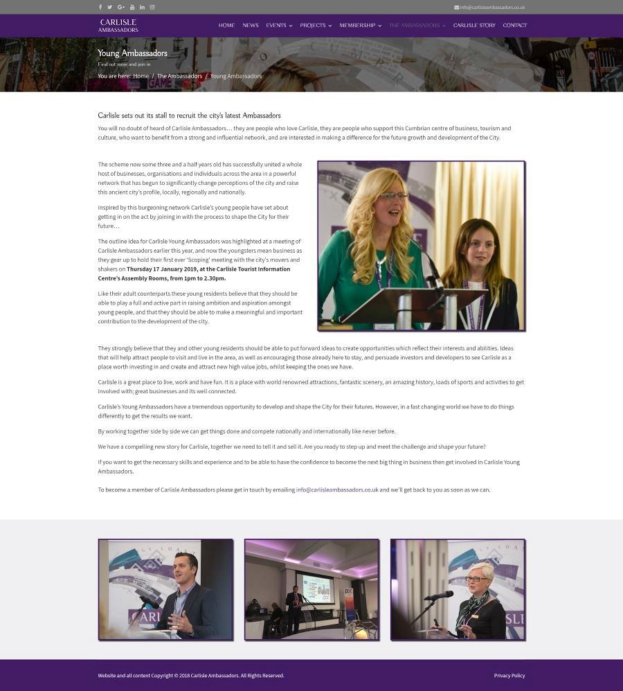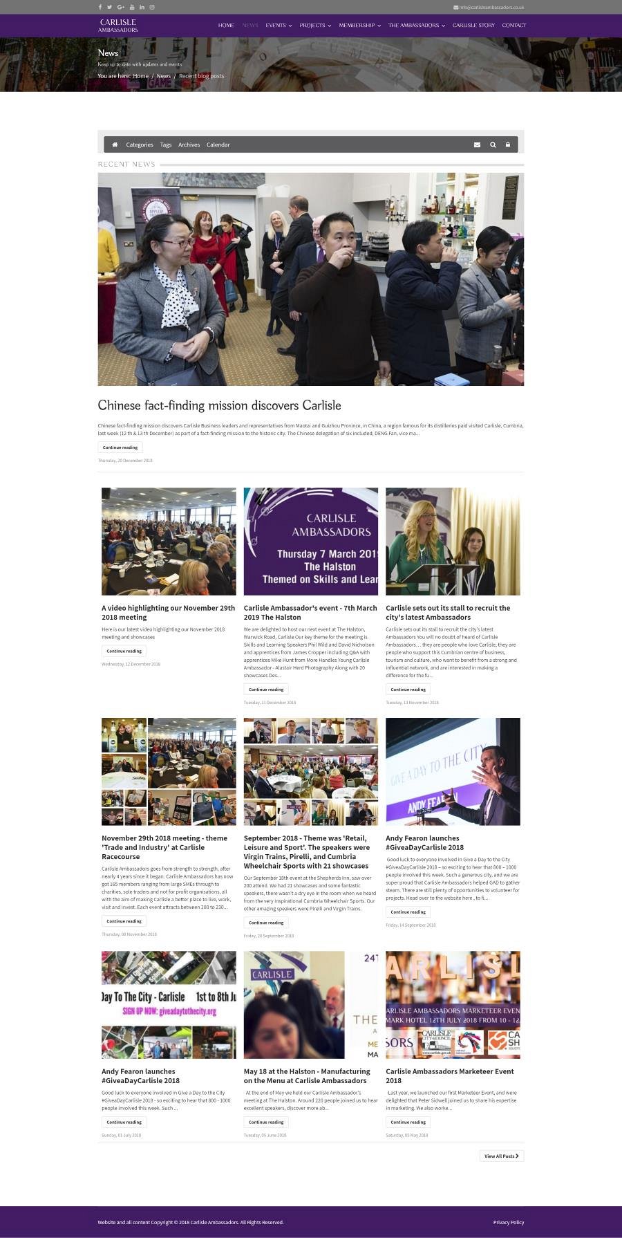 We were very proud to be asked to create a new website for Carlisle Ambassadors, moving away from an existing WordPress solution which no longer met the needs of the group.