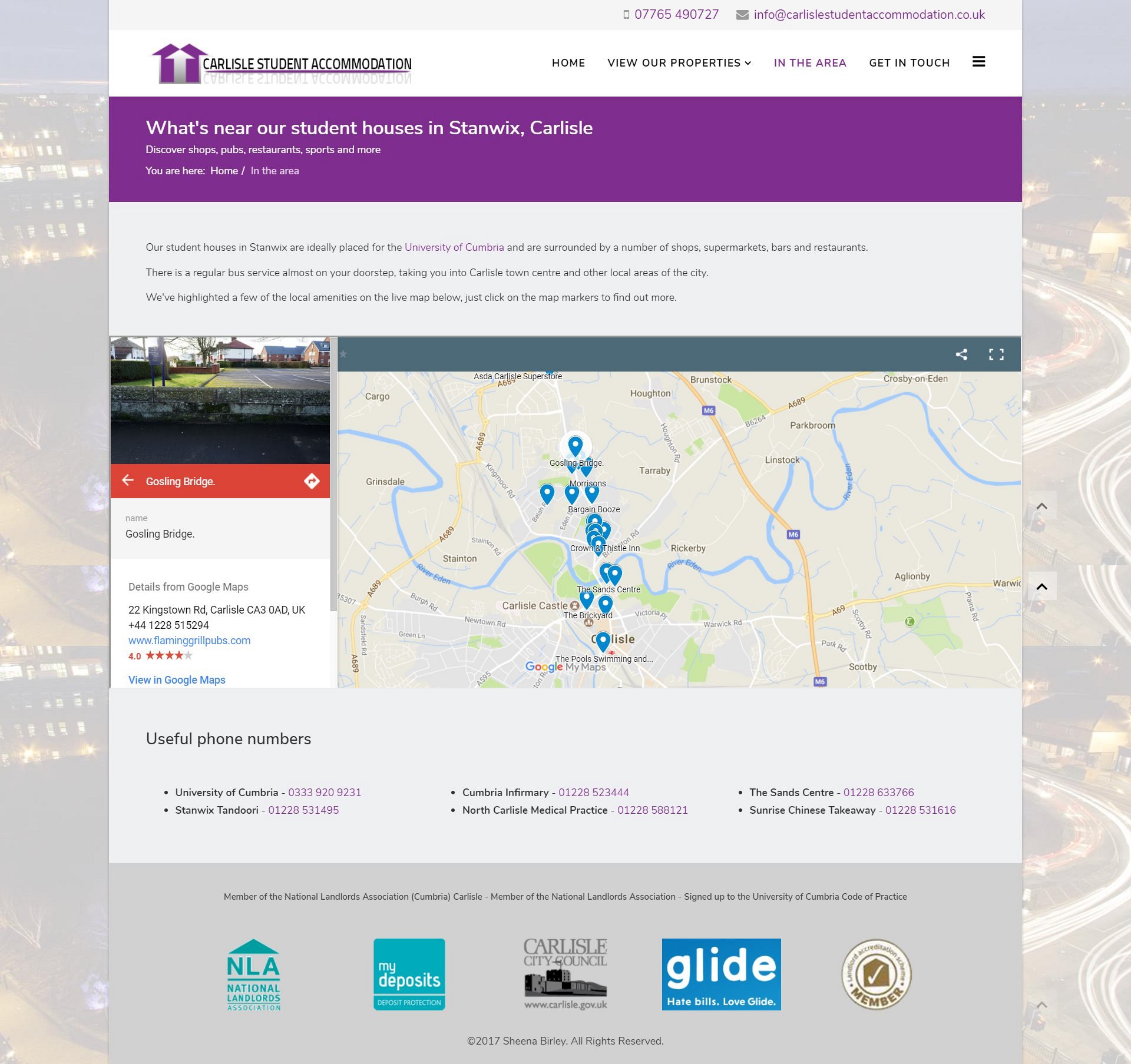 Sheena got in touch and asked us to look at improving the SEO of her existing website which was all but invisible for her Stanwix-based Carlisle student houses for rent. With a full re-design, this website is number 1 on Google for anyone searching for student accommodation in Stanwix, which is a great result!