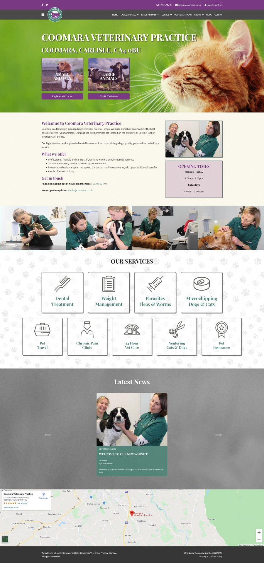 With their original web designer no longer in a position to support them, Coomara asked us to design a new website for their veterinary practice in Carlisle. With the desire for improves search results, the website page structure and content has been created around initial SEO research, based on real-life search data with no guesswork.