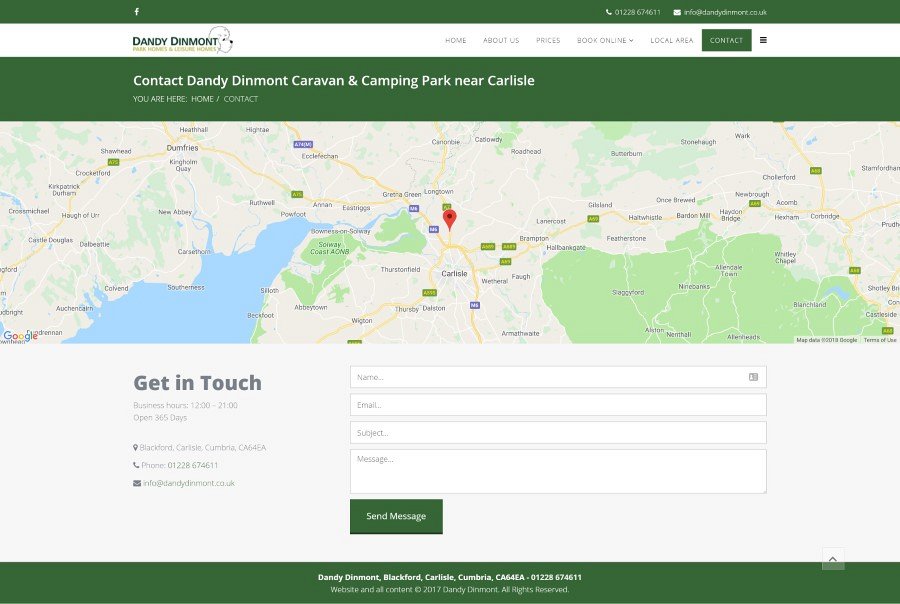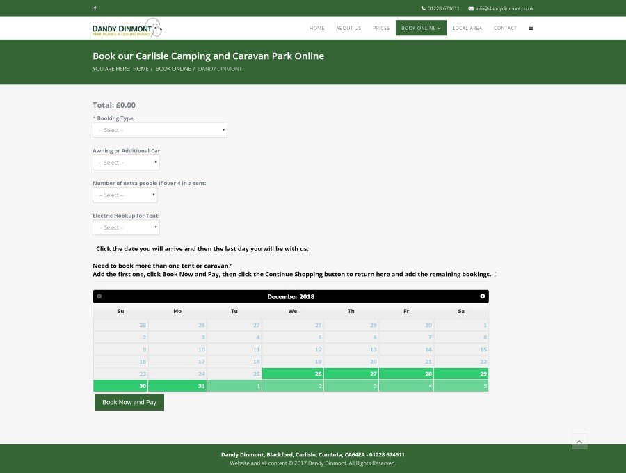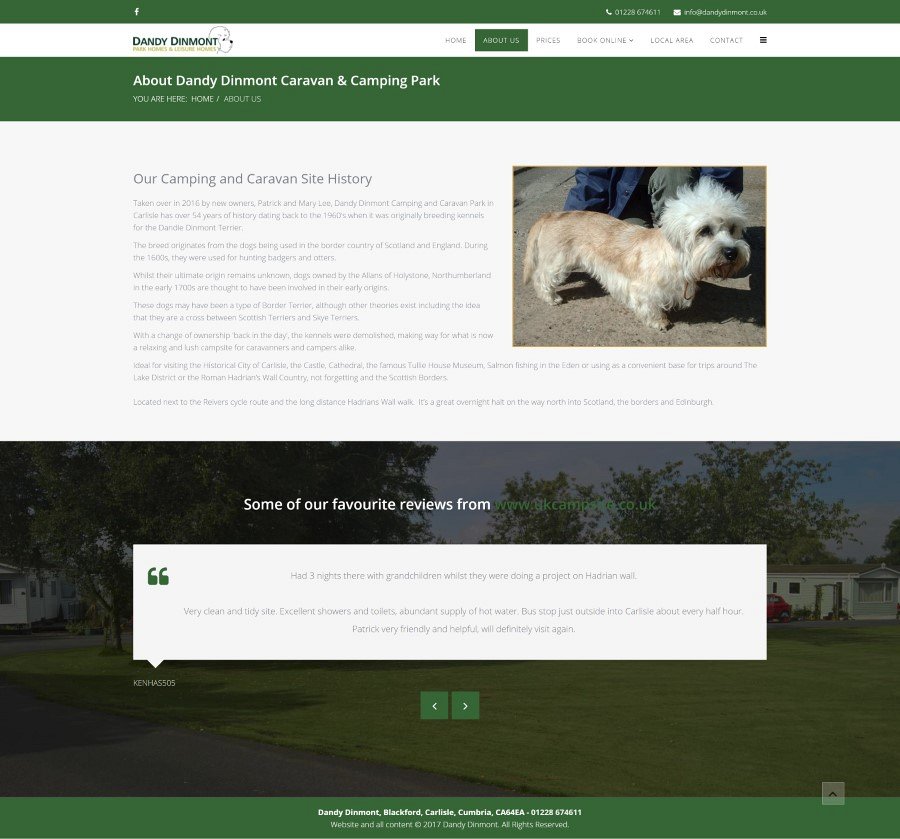 With a new owner, Dandy Dinmont Caravan Park in Carlisle got in touch and asked us to create a new website for their business, replacing an old site and incoporating online booking of their range of camping and caravan park facilities.