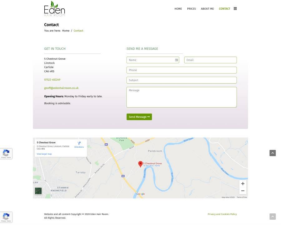 Taking on board ideas from the client and a range of photos from themselves and their product supplier, we created a clear and minimalist website design to showcase their personal hair salon in Carlisle, matching well with existing paperwork used by the business.