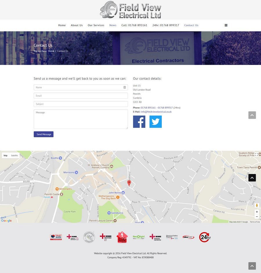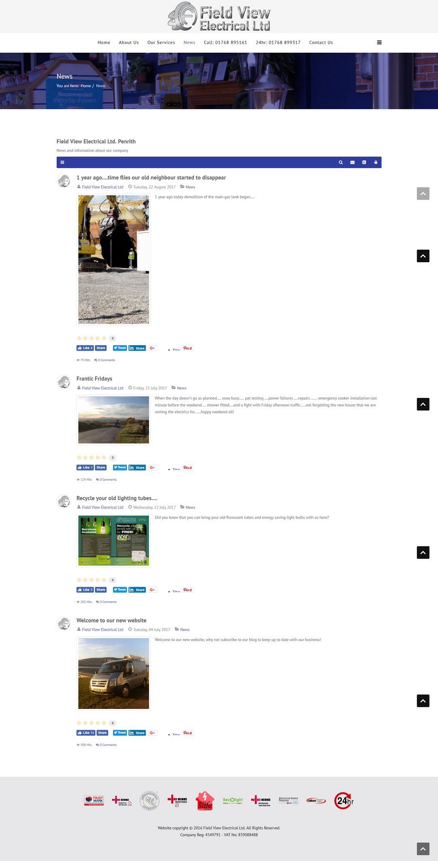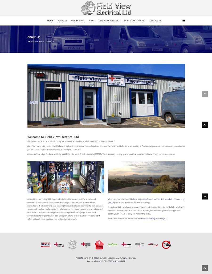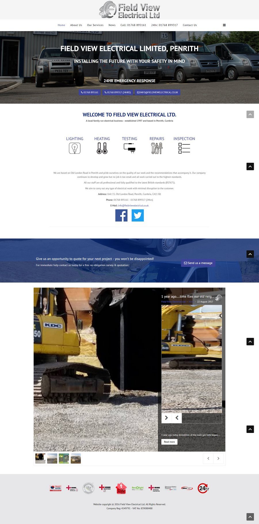 Bringing an old website up to date with a new design including a social-media linked blog, this website design for Field View Electrical Limited in Penrith showcases the range of electrical services offered by the company.