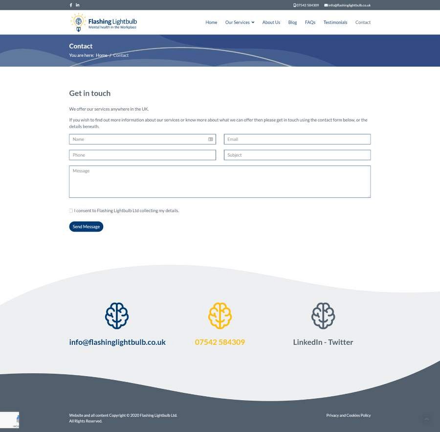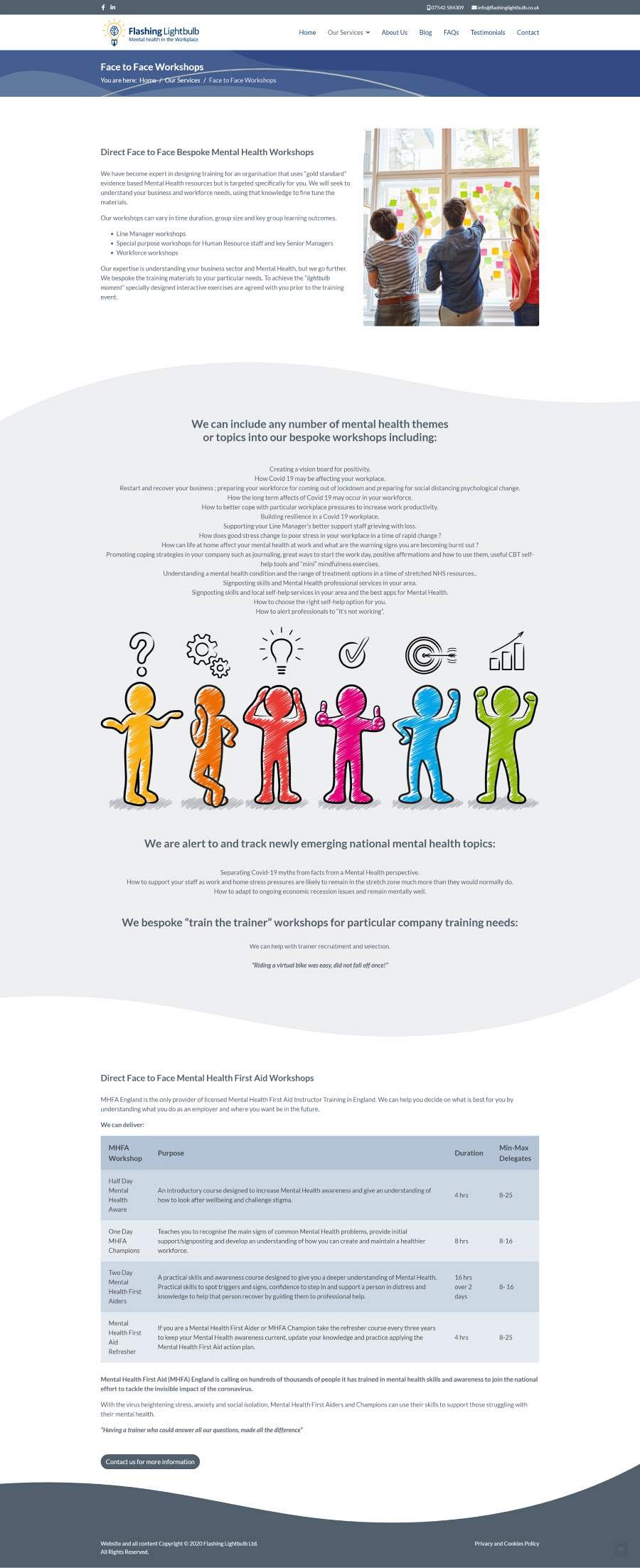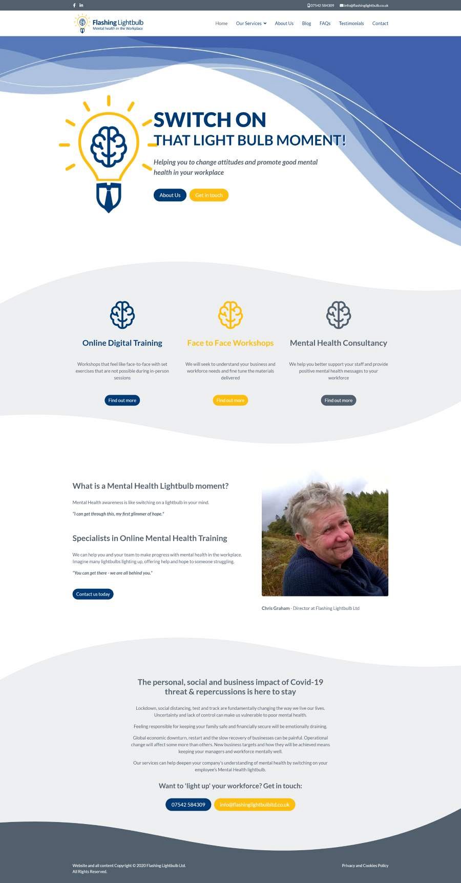 As a new mental health training company, Flashing Light Bulb Ltd asked us to design a website to complement their business.
