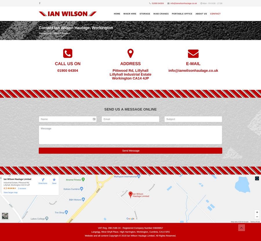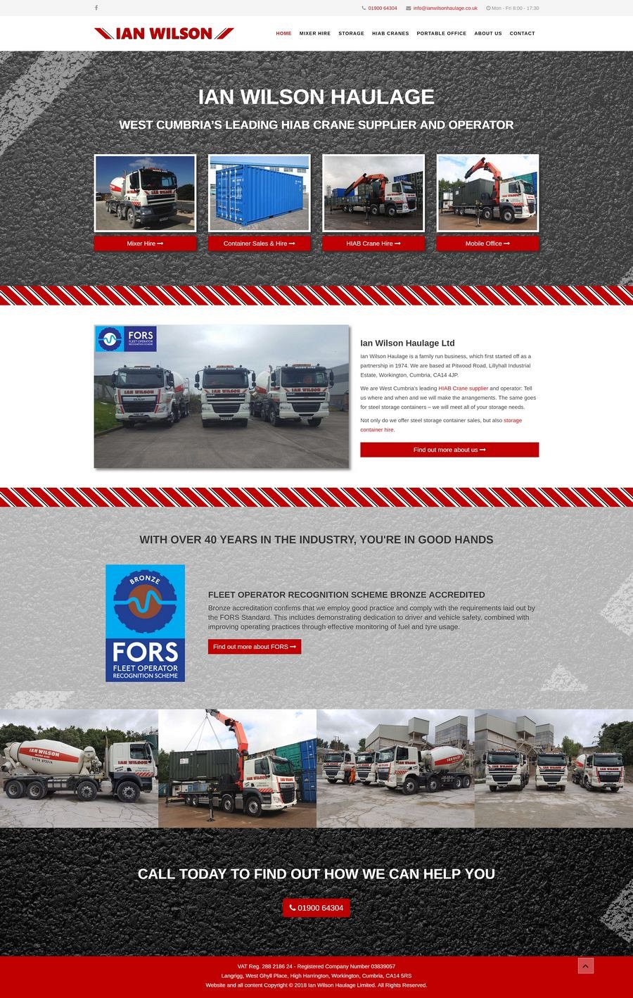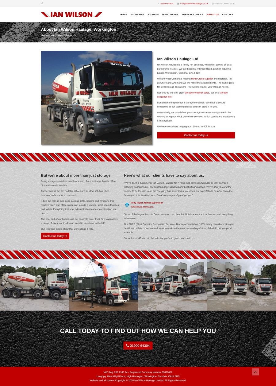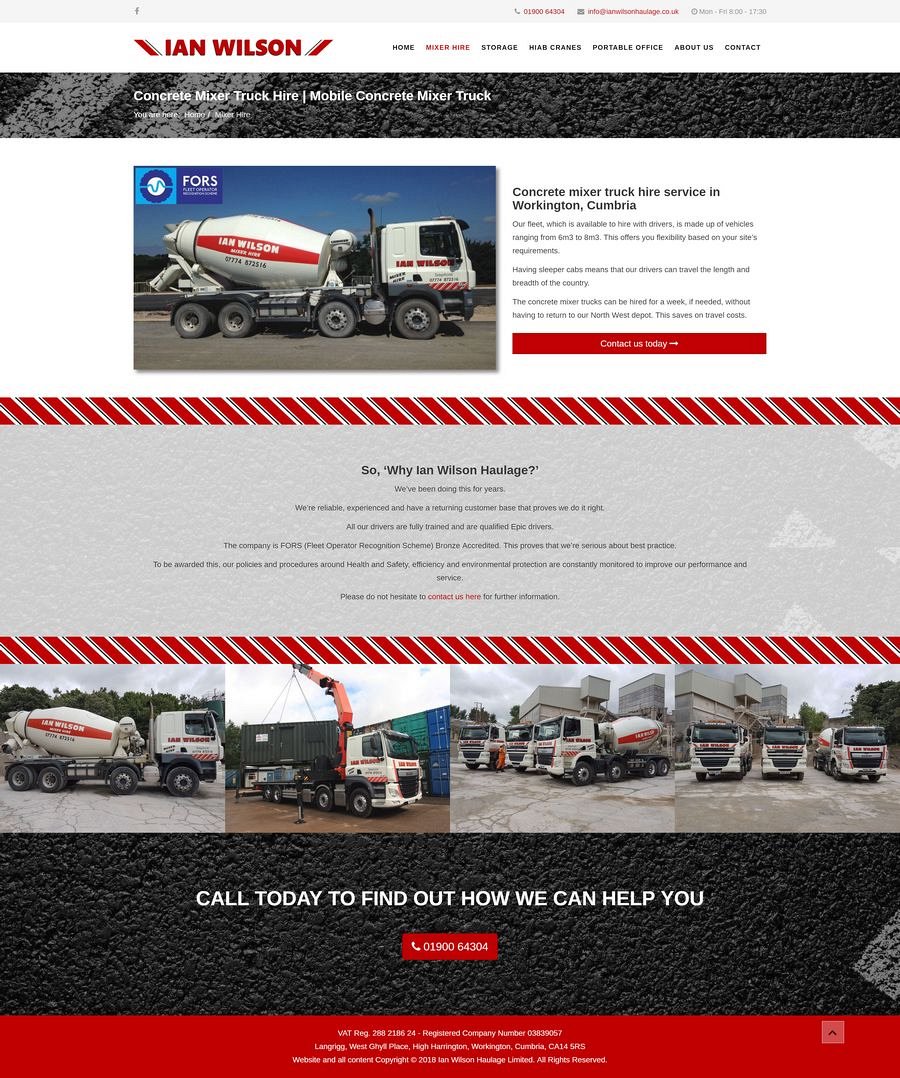 Ian Wilson Haulage contacted us to create a brand new website for their company, which so far did not have any website at all. We worked with the business, their copy writer and SEO links to create a web design that was in keeping with their existing company imagery used across their range of cement mixers, trucks and other vehicles.