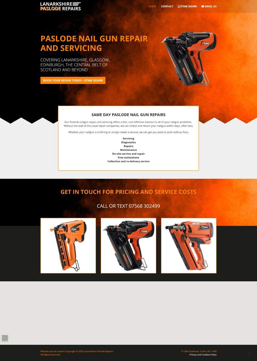 As a small business offering specialised repair and servicing of Paslode nail guns, Lanarkshire Paslode Repairs asked us to design and build a website for their business with focus on local SEO. Initial research suggested that competition was minimal, so we worked on the website and Google My Business listing to give them some initial online presence.