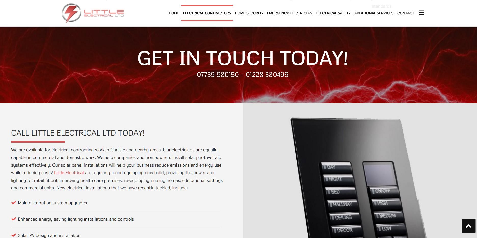 Craig approached us to create a website for his electrical contracting business that would perform as well as possible on search engines. In order to achieve this, we worked in collaboration with Ray from Consulting Cumbria who provided initial research into the appropriate keywords and phrases to target, as well as providing the best menu and content structure to use for the website.
