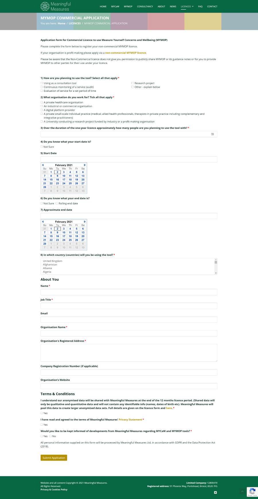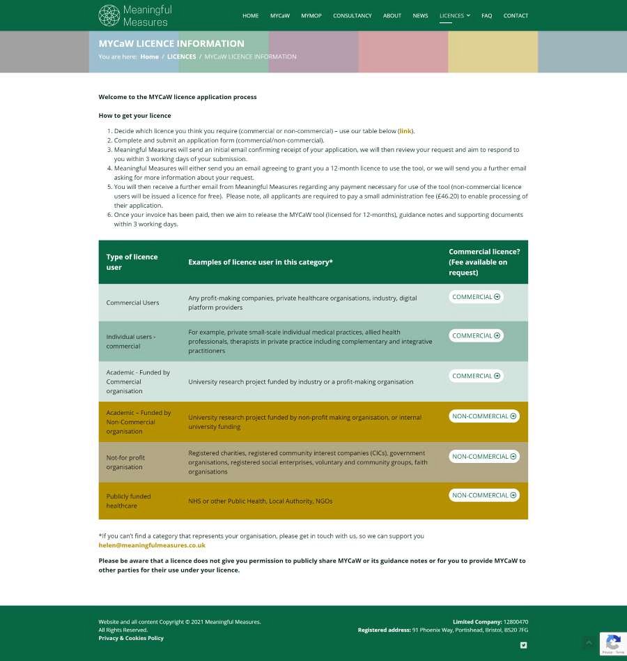 After some amazing initial feedback, the website was completed with a range of informational pages and four custom online forms to capture applications from those wishing to use the MYCaW and MYMOP processes within their own work.