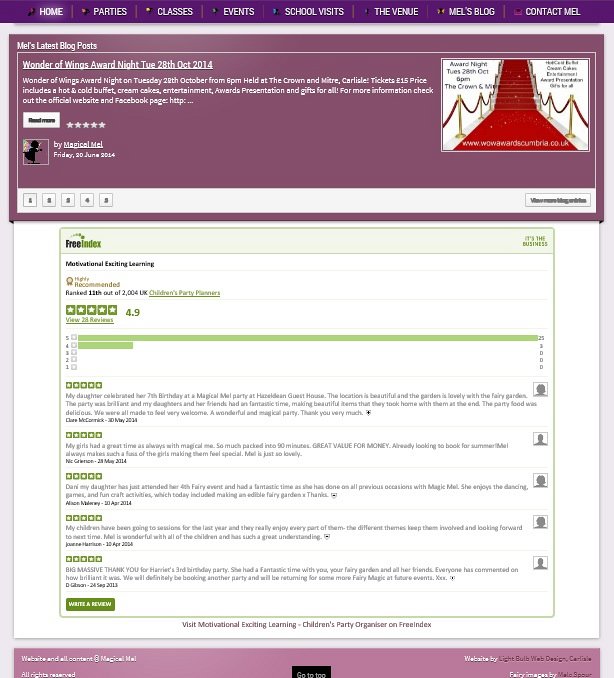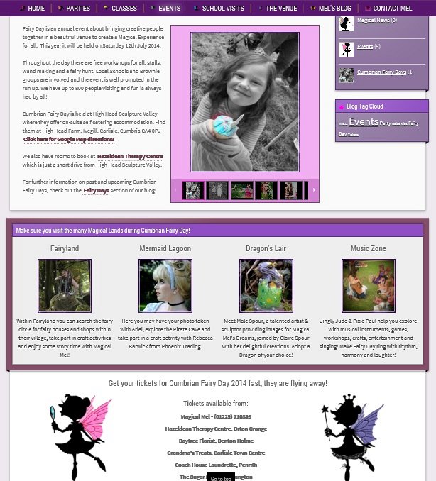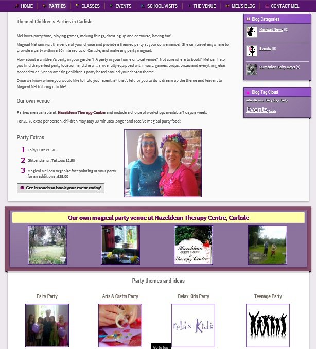 Mel was the winner of a free website voucher which we offered to May Fifteen in Carlisle for their Masquerade Ball in 2014. Mel already had 4 websites which she managed through a free website provider, however there was a lot of repeated content and none of them were responsive, using Flash for all pages leaving them poorly search engine optimised and not viewable on most mobiles and tablets.