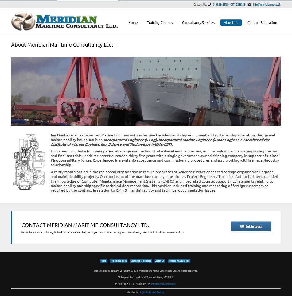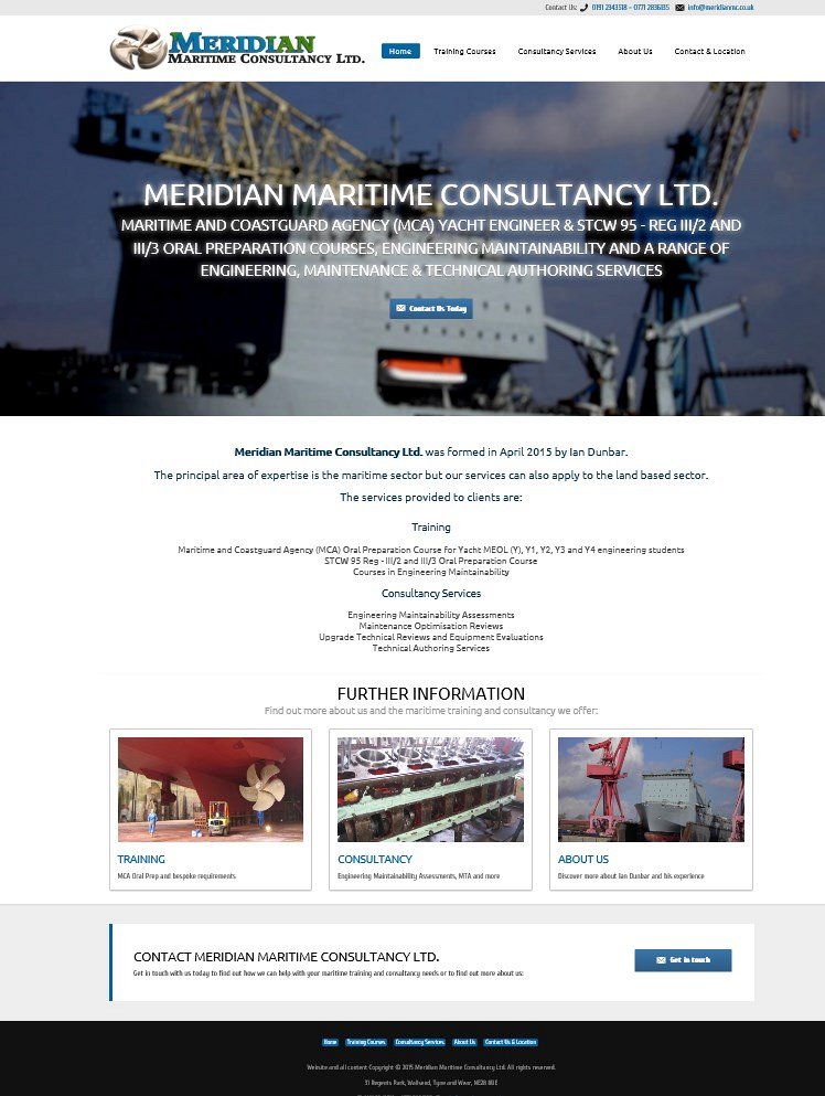 Meridian Maritime Consultancy Ltd. were recommended to us by an existing client (www.t6av.com) and asked us to create a website design for their Newcastle based business which launched in April of 2015.