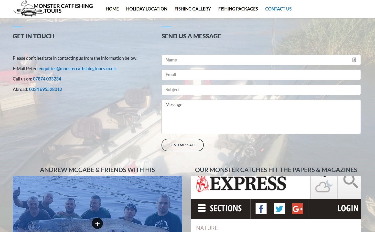 After creating the initial website design and layout, full access was given to Monster Catfishing who then took over the design/layout of the majority of the website pages to put their own photos and text in as required. After some tweaking to the layout by Light Bulb Web Design once this was all done, the website was made live and a number of URL re-directs were created to ensure anyone visiting links from the old website would find the new pages and website without problem.