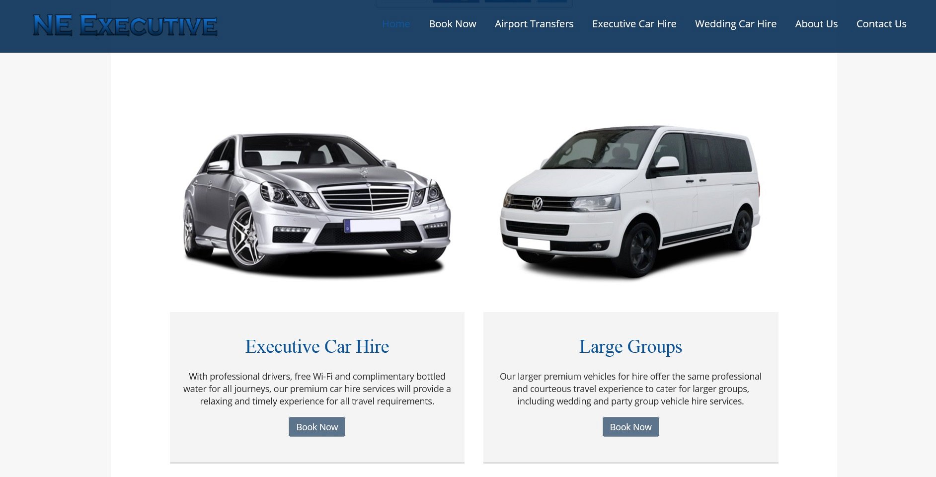 NE Executive initially approached us to create a website for their executive car and vehicle hire services. Part way through the project it was expanded to include a fully comprehensive online booking system.