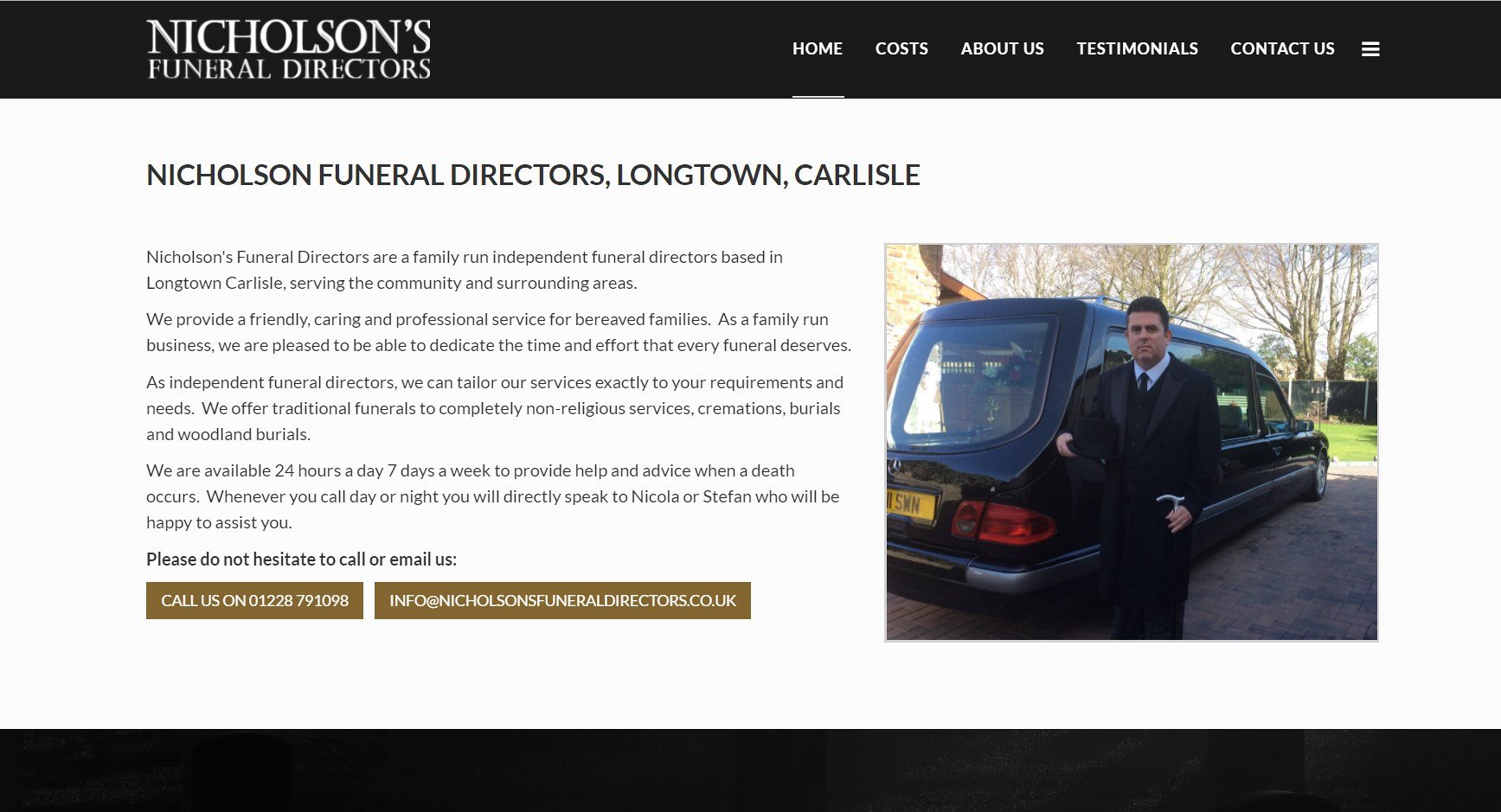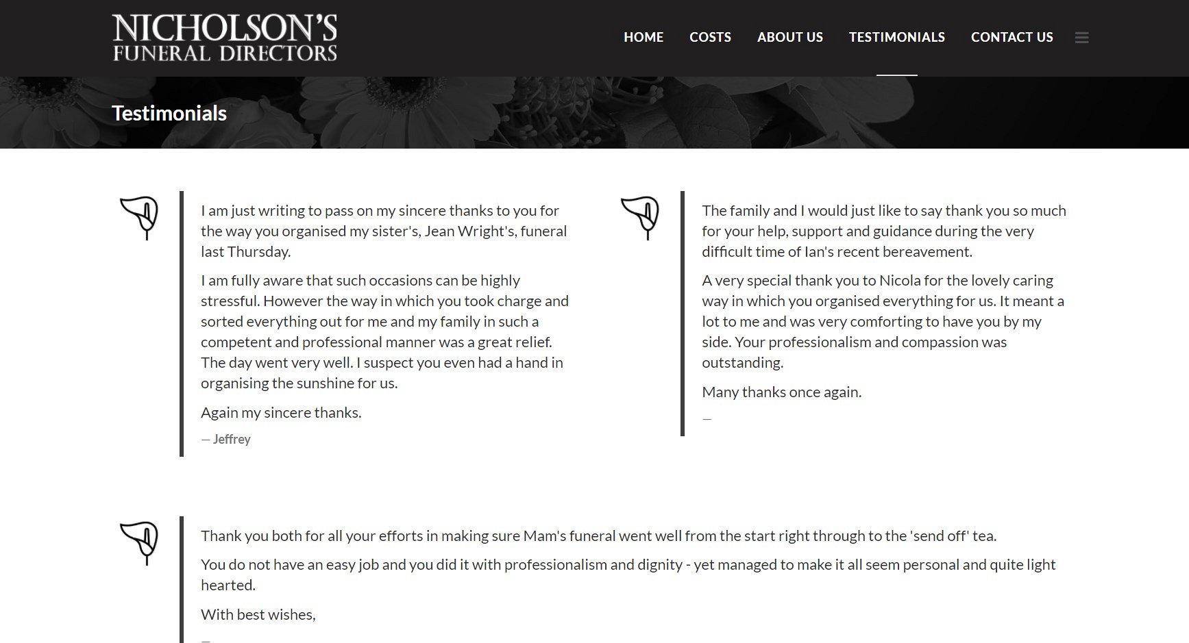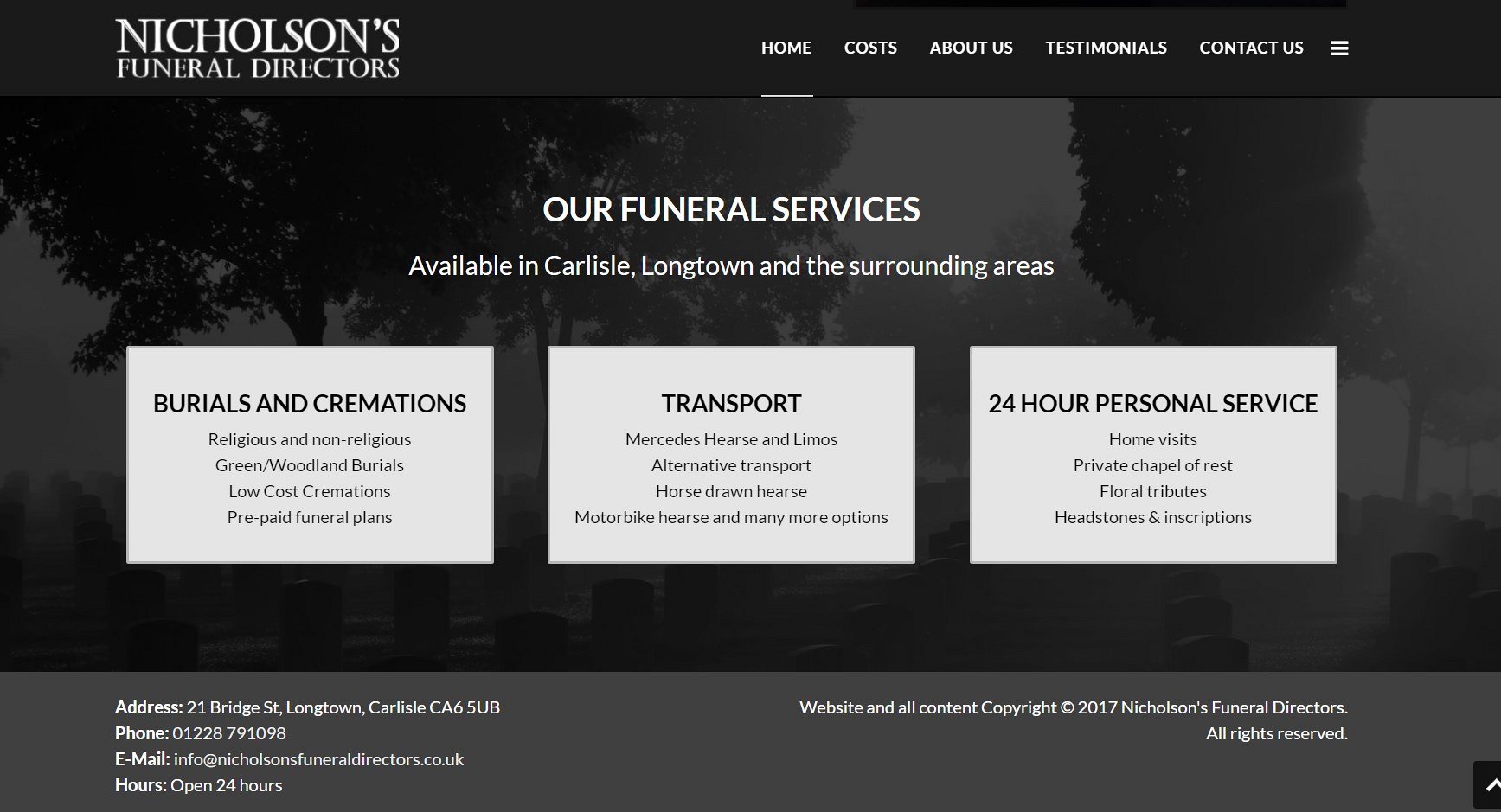 Creating a website design for some subject matters and businesses requires a different approach than others. For this funeral directors website, we presented the business name, focus and contact details clearly above the fold, with further information available from the sticky-menu which is there once you scroll down.