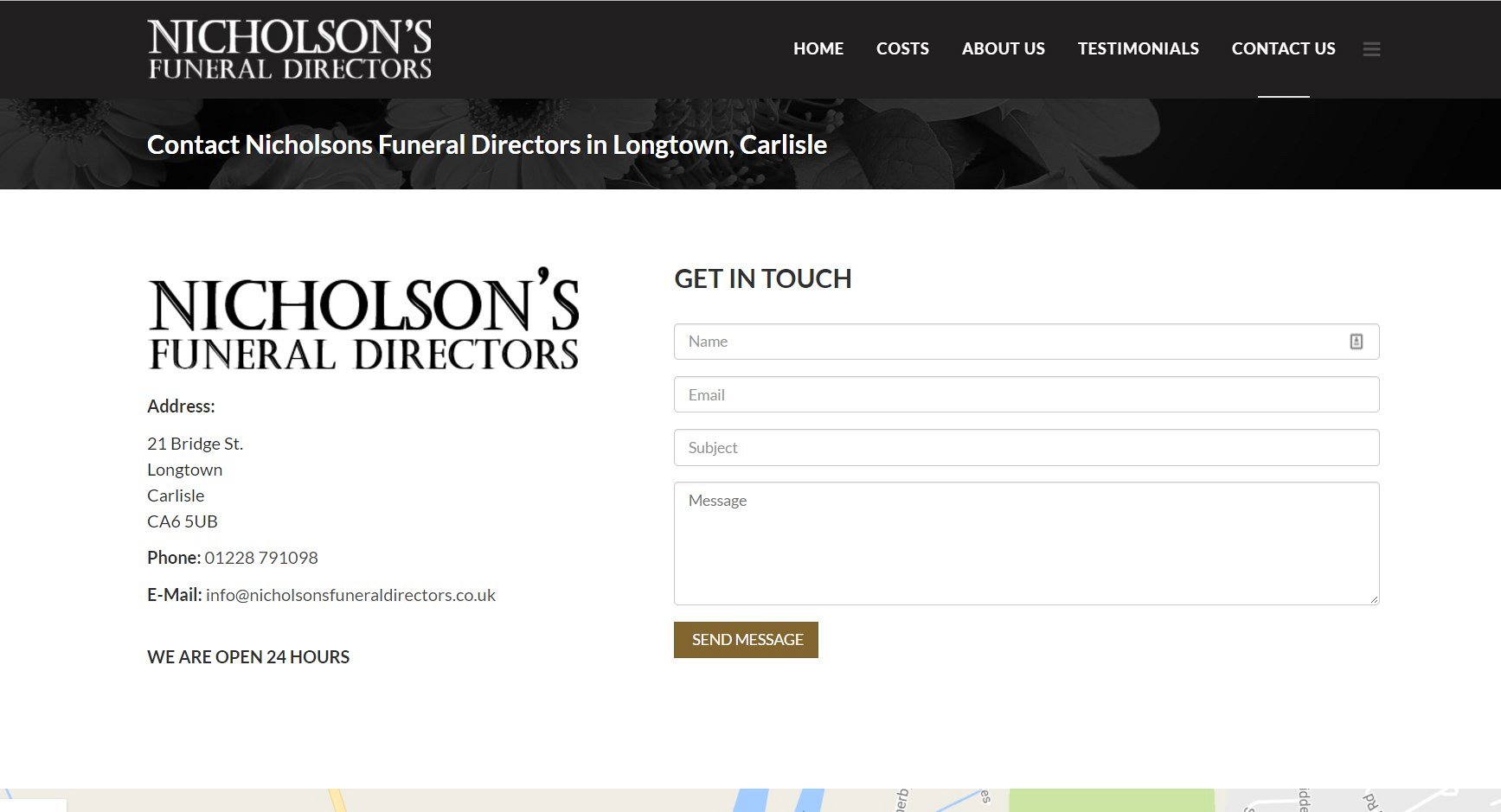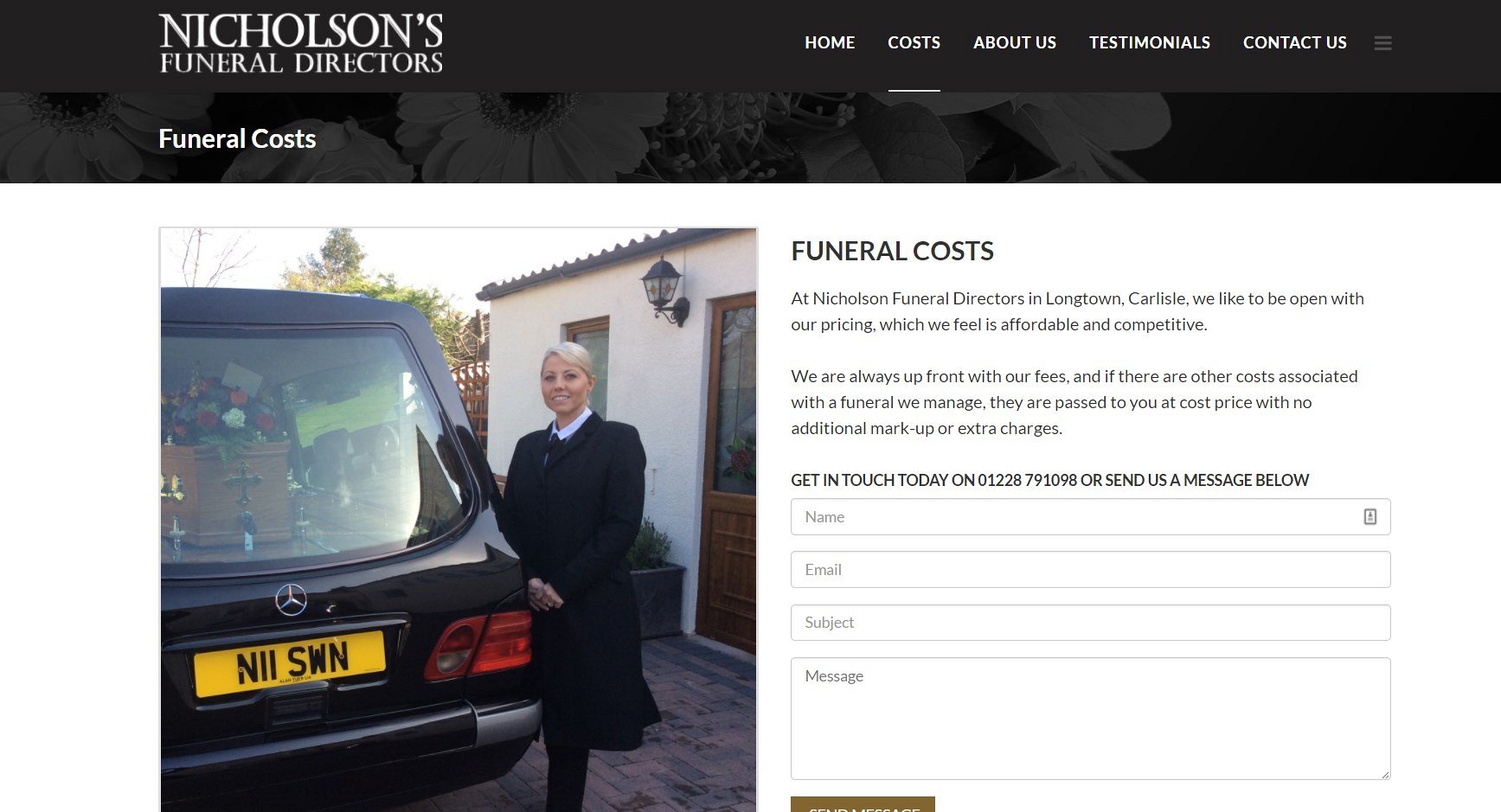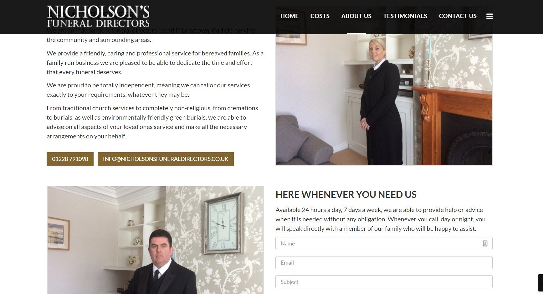 Creating a website design for some subject matters and businesses requires a different approach than others. For this funeral directors website, we presented the business name, focus and contact details clearly above the fold, with further information available from the sticky-menu which is there once you scroll down.