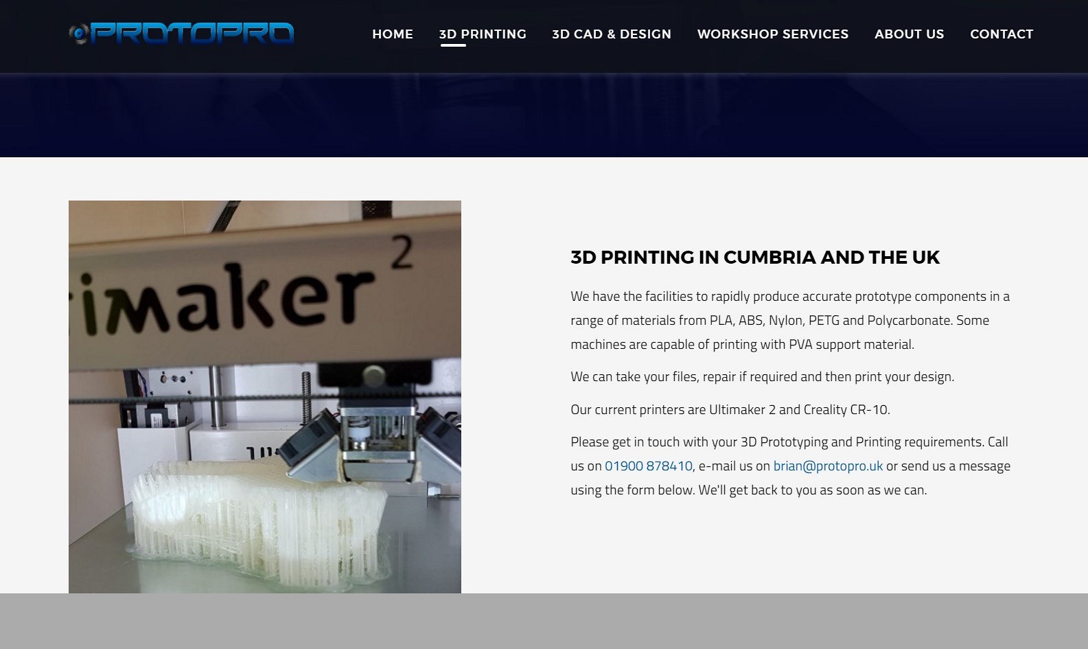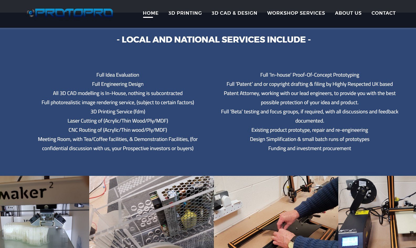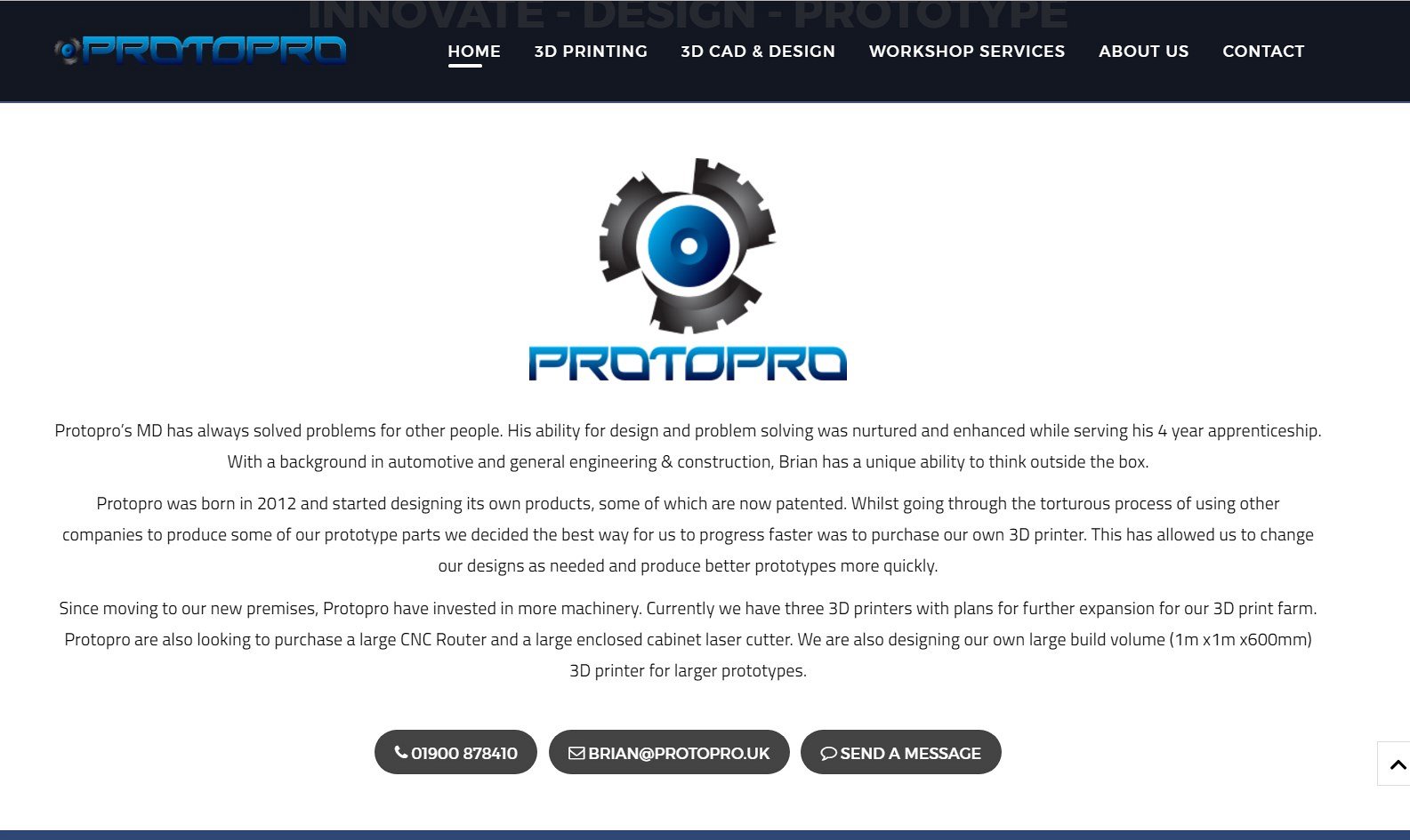 Protopro got in touch to discuss how they could take the first step online with their business, as they were unsure of what their website might need to include. We discussed their business in detail over the phone, and got a full understanding of what services they offer. Following this initial conversation, we put a design and structure proposal together and began to move forward creating the new web design for their Maryport-based company.