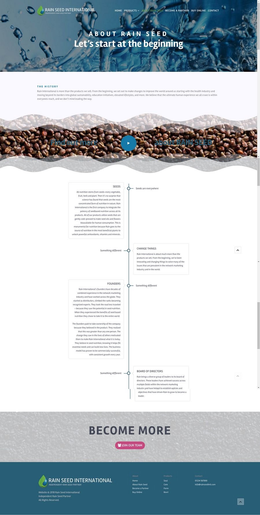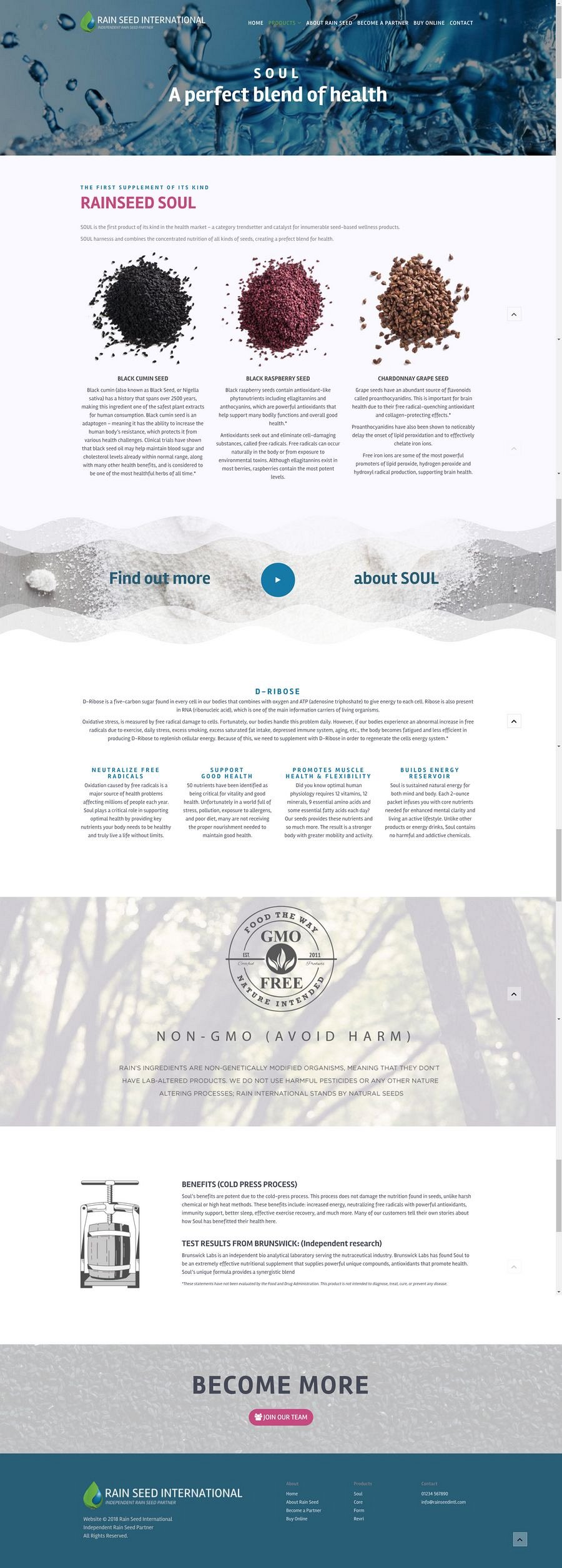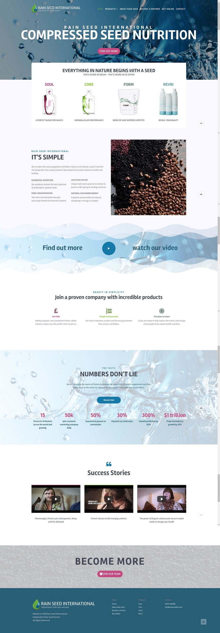 As an existing client, Larry asked us to create a second website for a new business he started through becoming a Rain Seed International partner. Providing the information and details, we put together a strongly branded design using the colour scheme and images as advised.