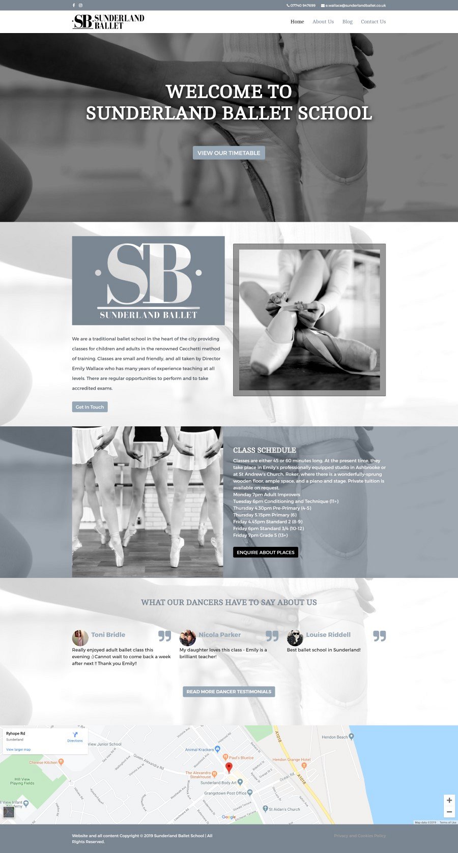 After being recommended to us by another client (Cumbria Ballet School), and looking to move away from a self-built website, Sunderland Ballet School commission us to design a new website for their dance school.