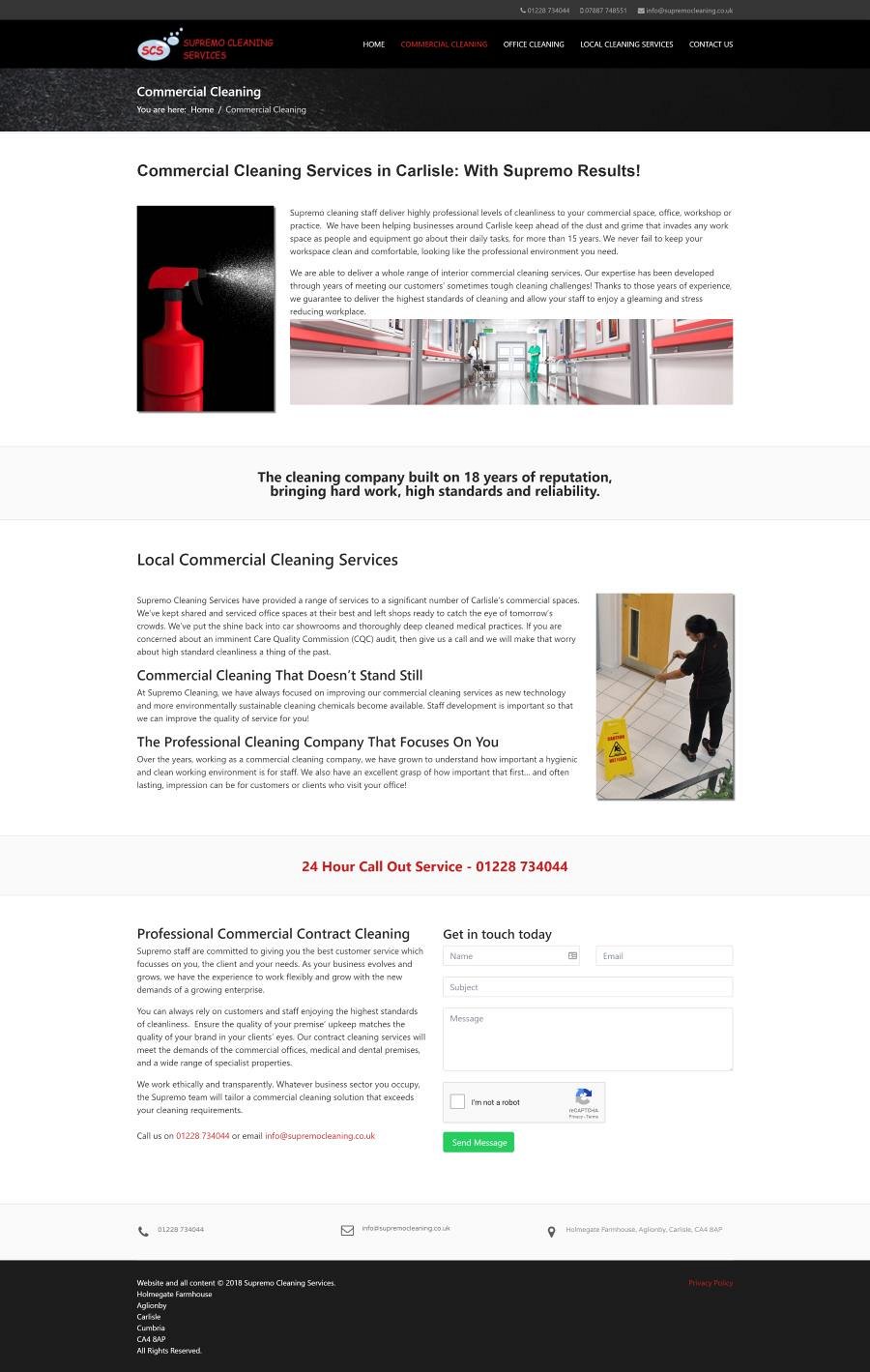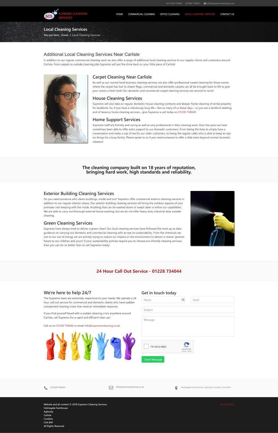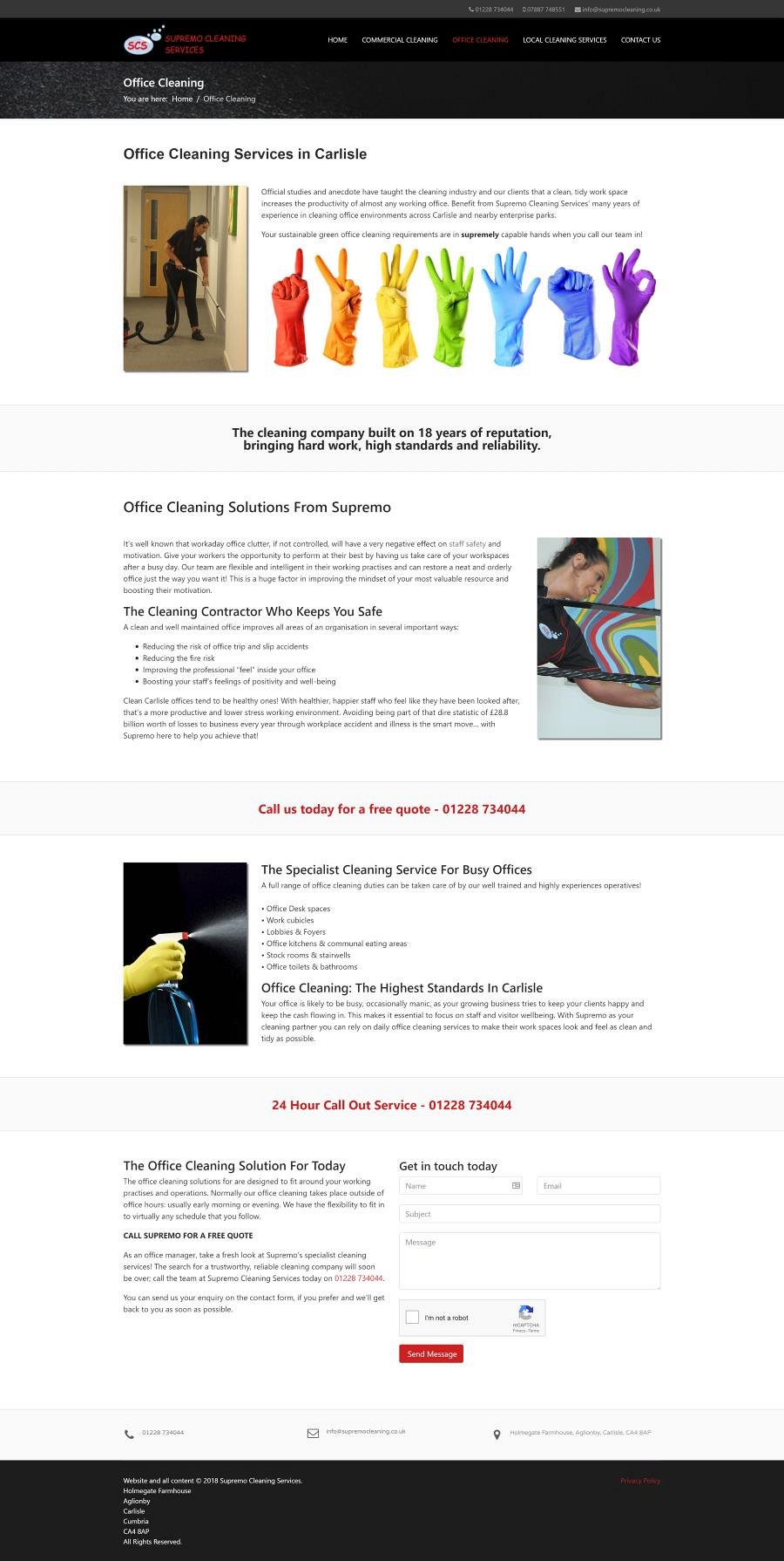 Supremo Cleaning Services in Carlisle contacted us to enquire about a website for their business, which whilst running for many years, had never ventured online. During the initial discussions, it was clear that their ambitions required both an initial and ongoing level of search engine optimisation to get the results they required.