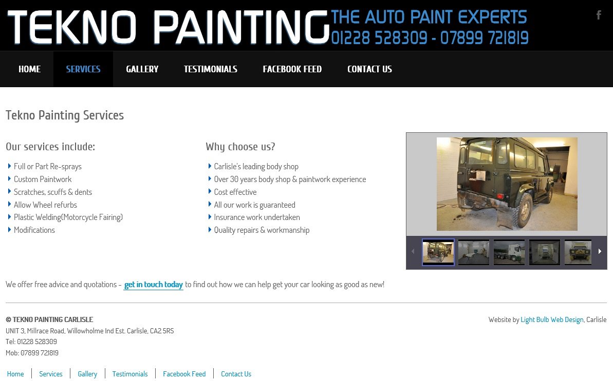 Google Map integration on the front page of the site gives clients an easy and interactive way of locating the business, with a live Facebook feed allowing the site owners to easily update the site with new images and work examples.