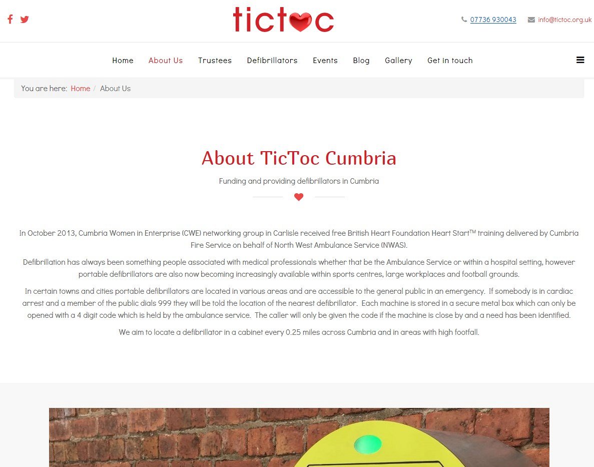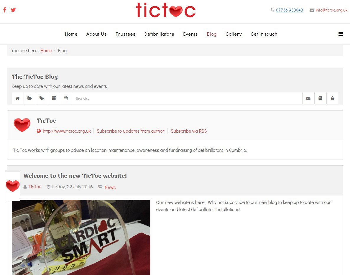 In line with the brief, we have created a clear and easy to navigate website, with plenty of information for visitors to make sure they understand the importance of defibrillators in the community, as well as letting them easily keep up to date with news and events by subscribing to the blog. On top of this, the blog is linked to the charities Facebook and Twitter accounts, allowing all new posts to show instantly on all of these platforms without having to create them on each one.