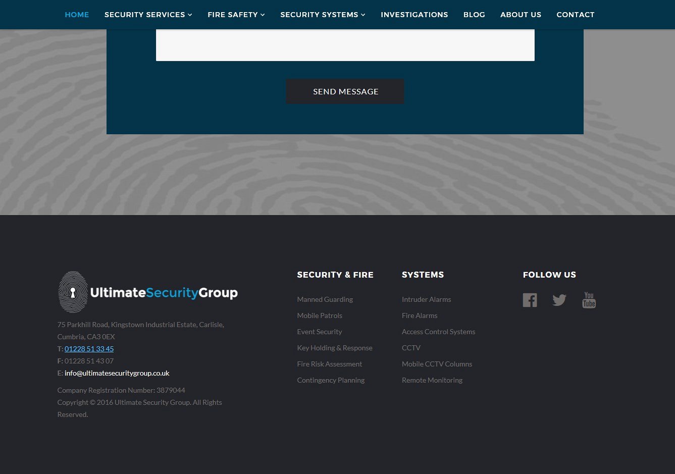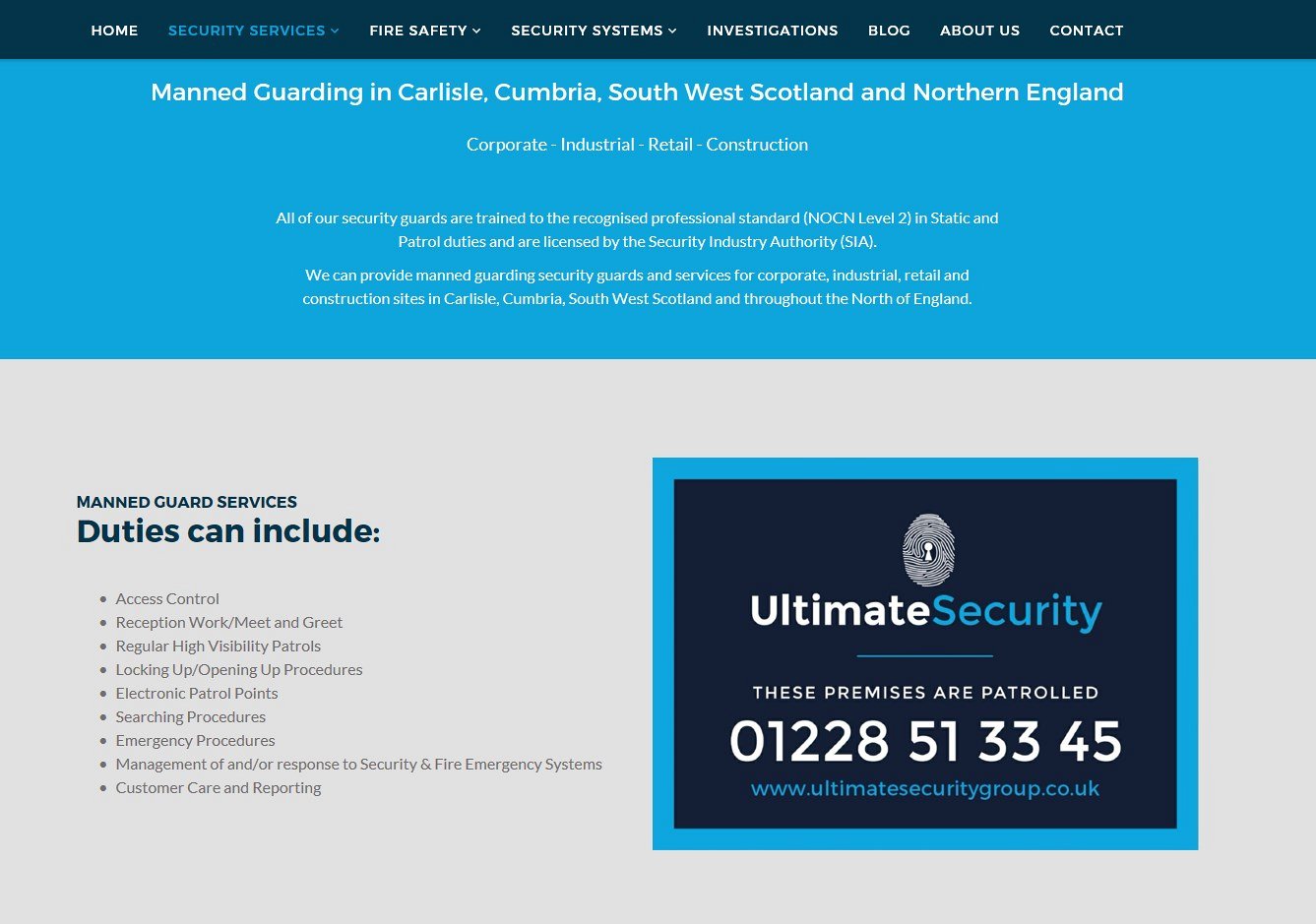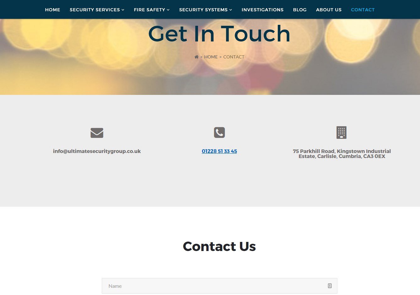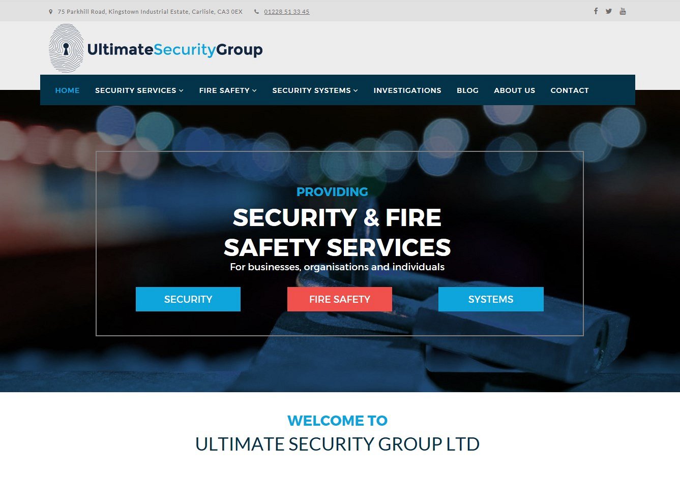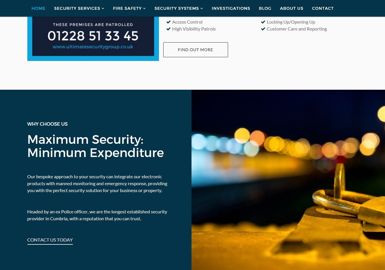 With sub-pages for each area, then linking out to the full informational pages for each service area, the website provides full information on all aspects of the company, and further includes a social-media linked blog to make sure Ultimate Security Group can easily update their website and other platforms from one easy place.
