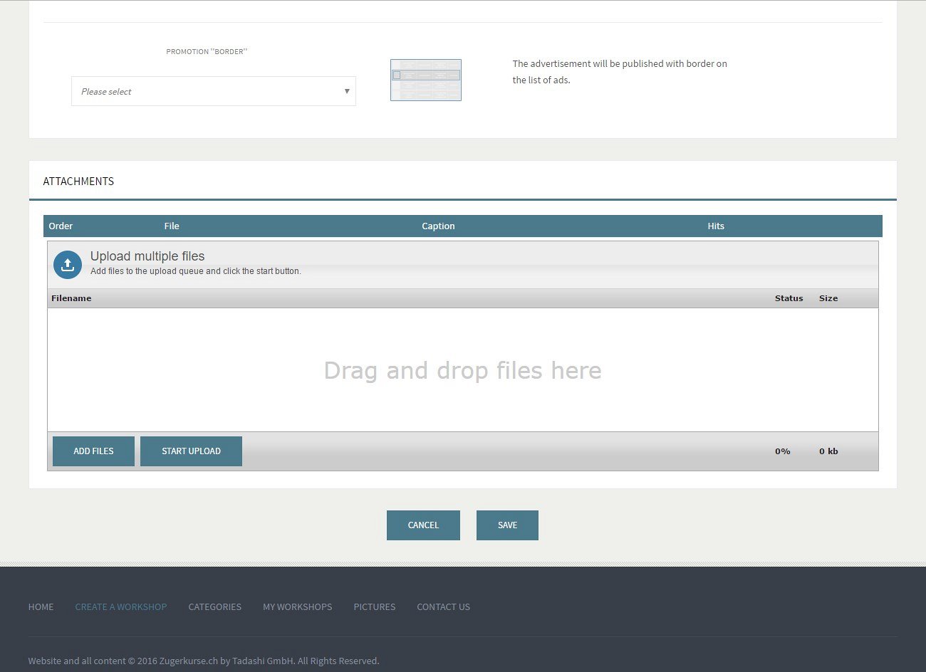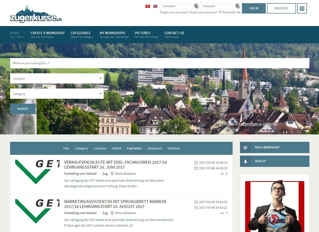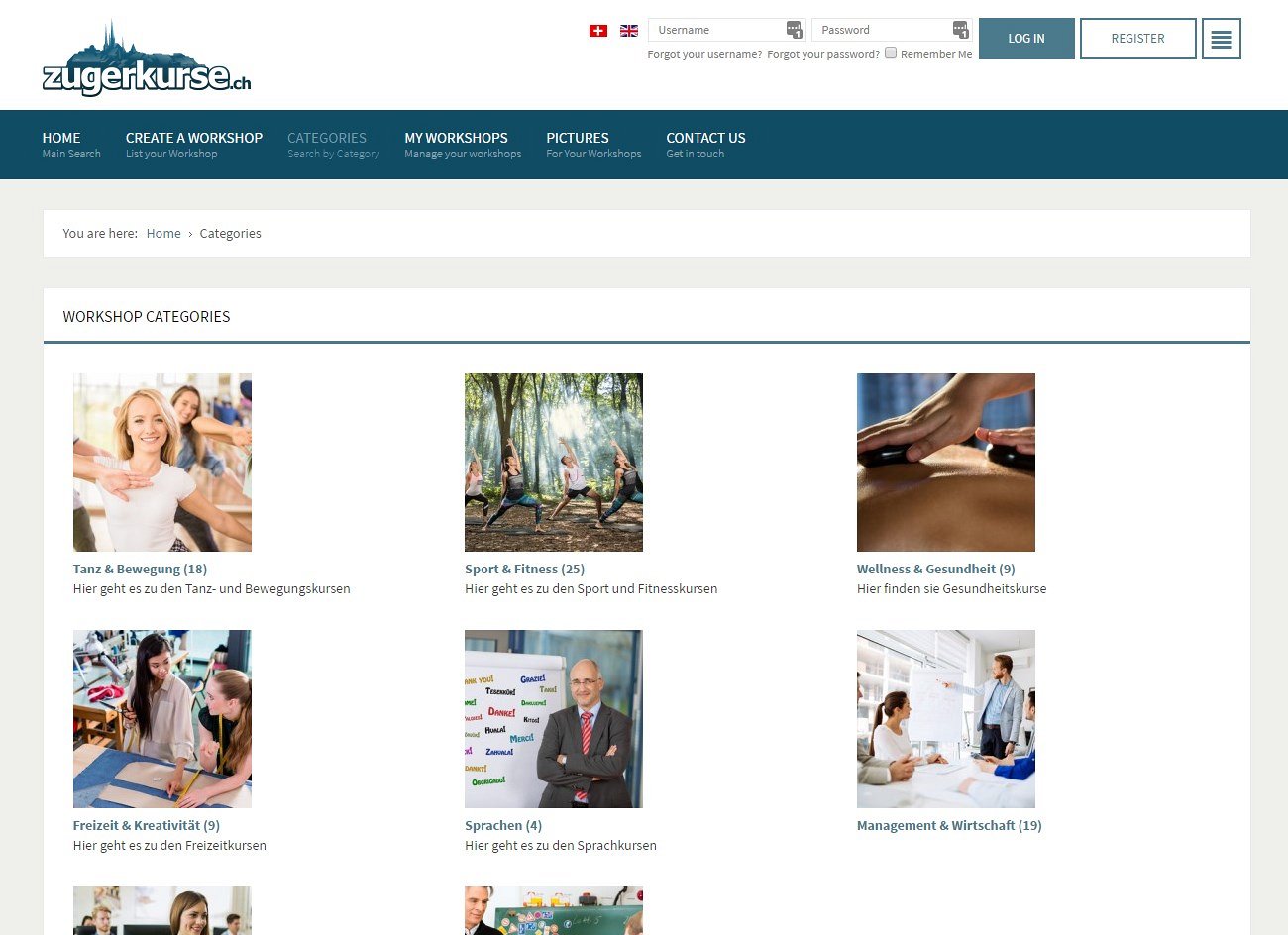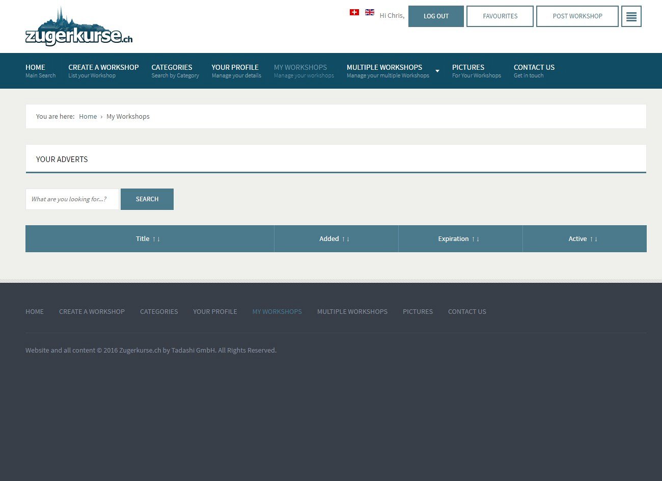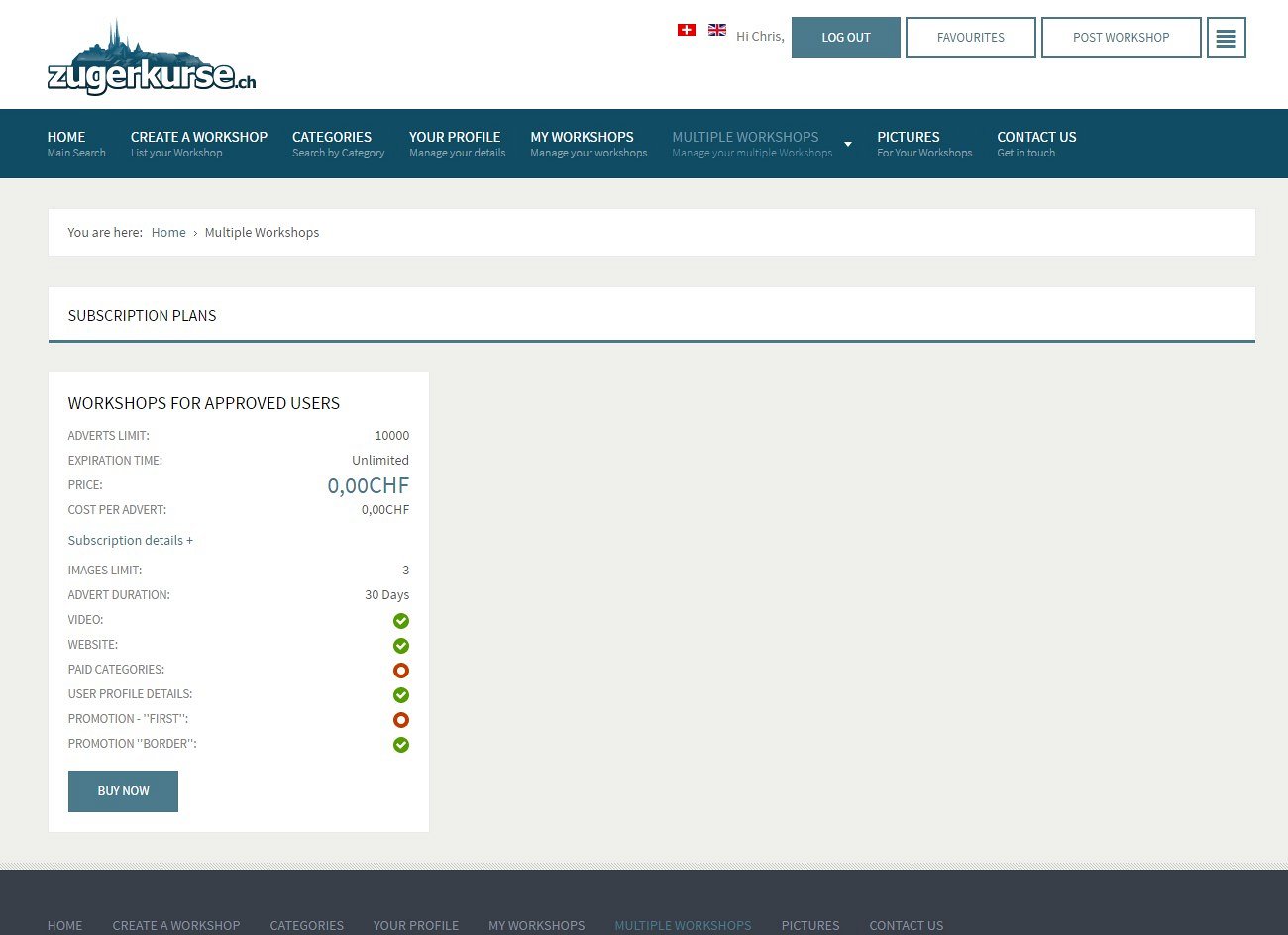 We were asked by a Swiss company to put a new website together for them, allowing local residents to list and advertise their classes and workshops. They required some paid options for the listings, letting people choose a free short-duration workshop advert or a paid featured advertisement for a choice of duration length.