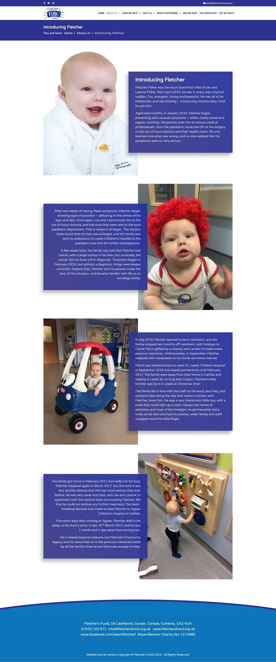 Leanne approached us to create a new website for Fletcher's Fund - a children's cancer charity in Carlisle.