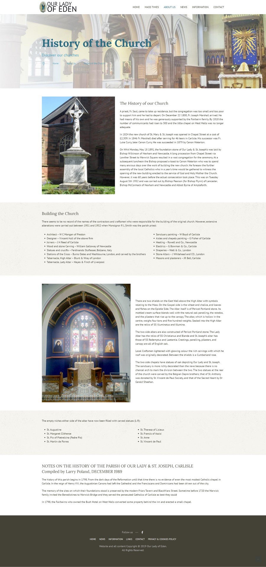 After being recommended to us by another client (Cumbrian Martyrs), Our Lady of Eden Parish put together a clear brief of what they needed from their new website.