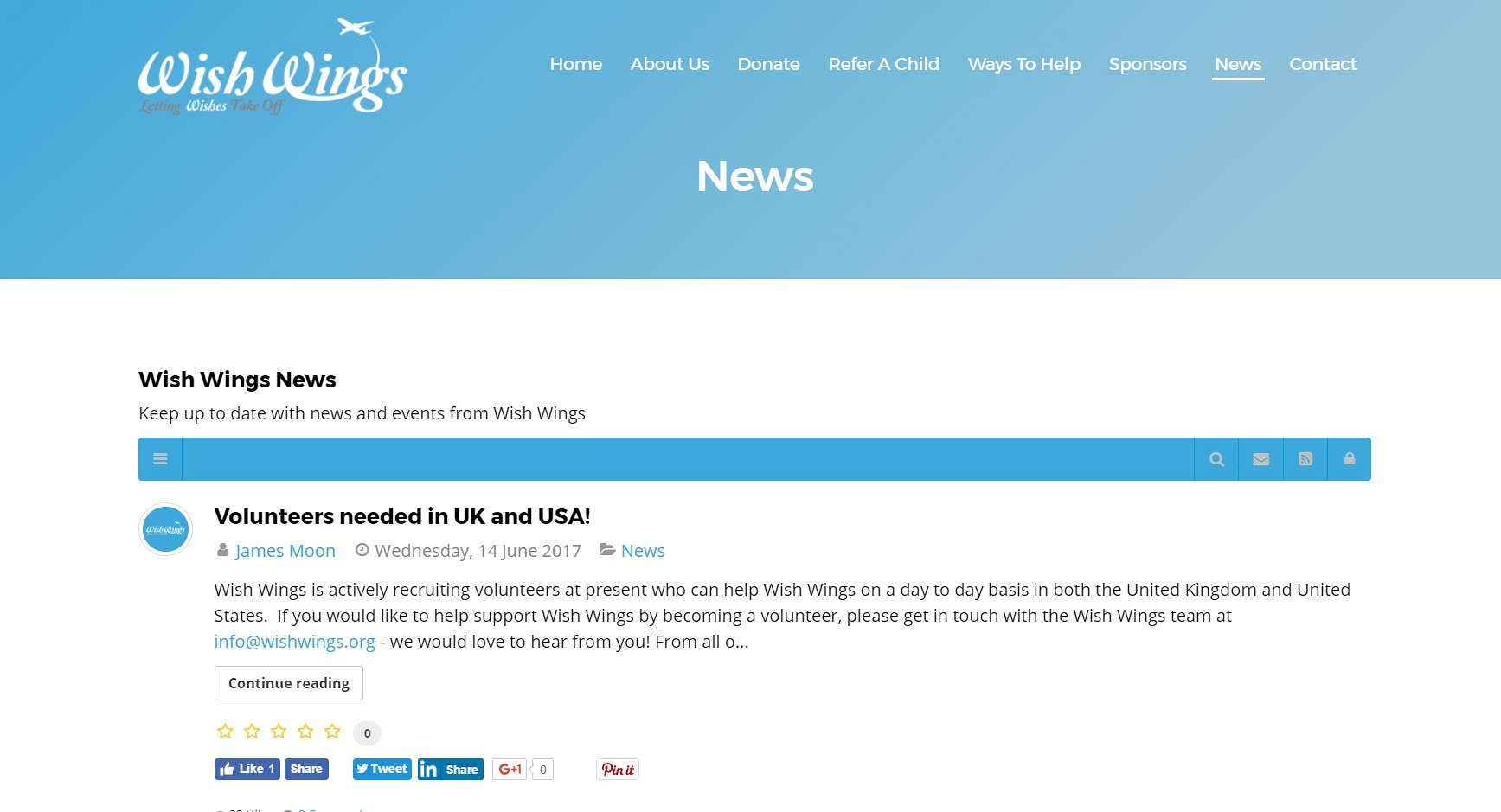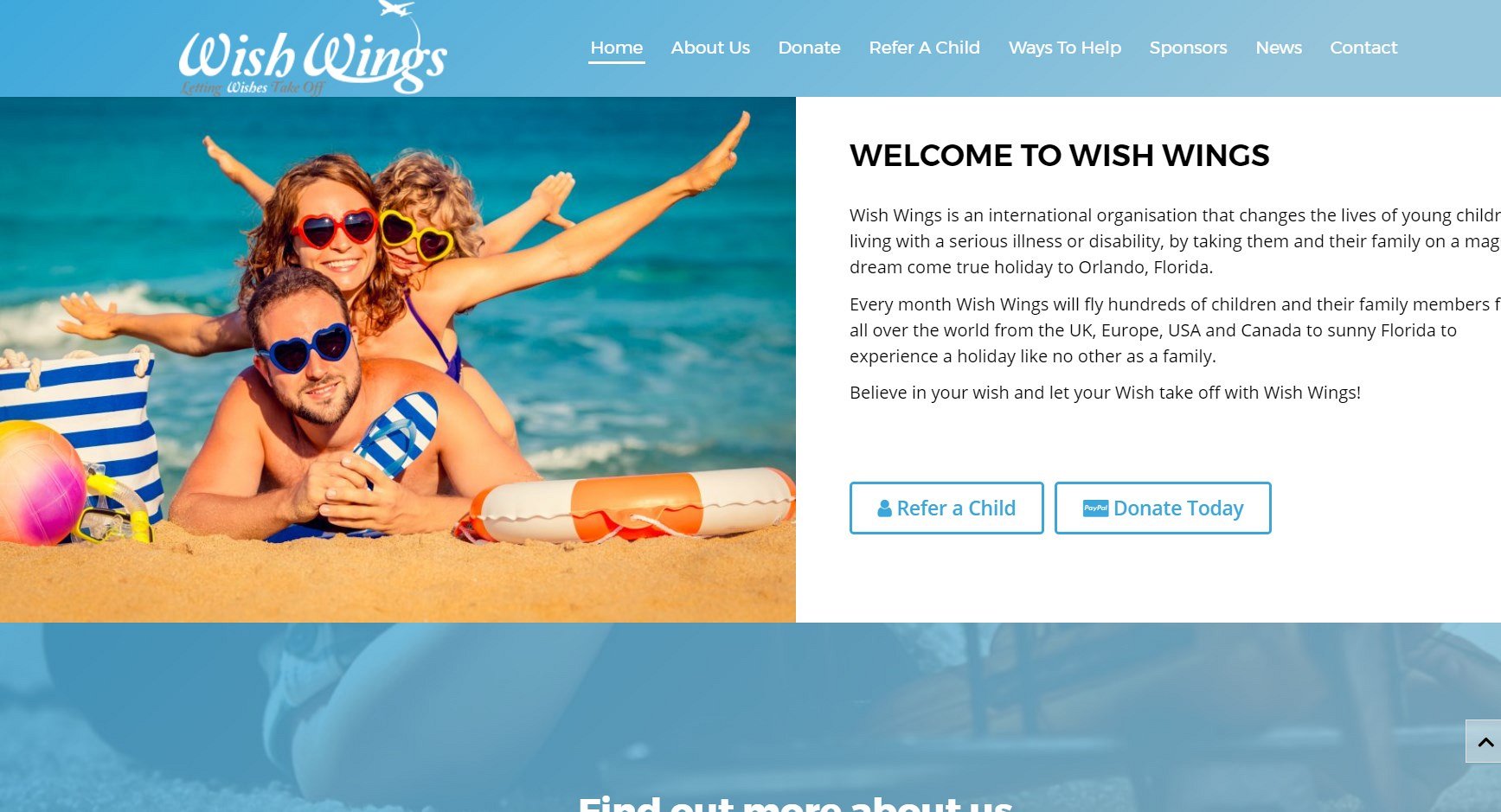 After a full review and discussion on how we would propose to create the new website design, we began work and created a finished website design with improved navigation and clear presentation of the information about the charity and what they do. The inclusion of an integrated blog, which sends new posts automatically to Facebook and Twitter, ensures that Wish Wings can easily keep their website and social media updated from one easy place.