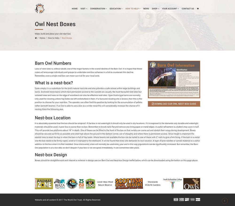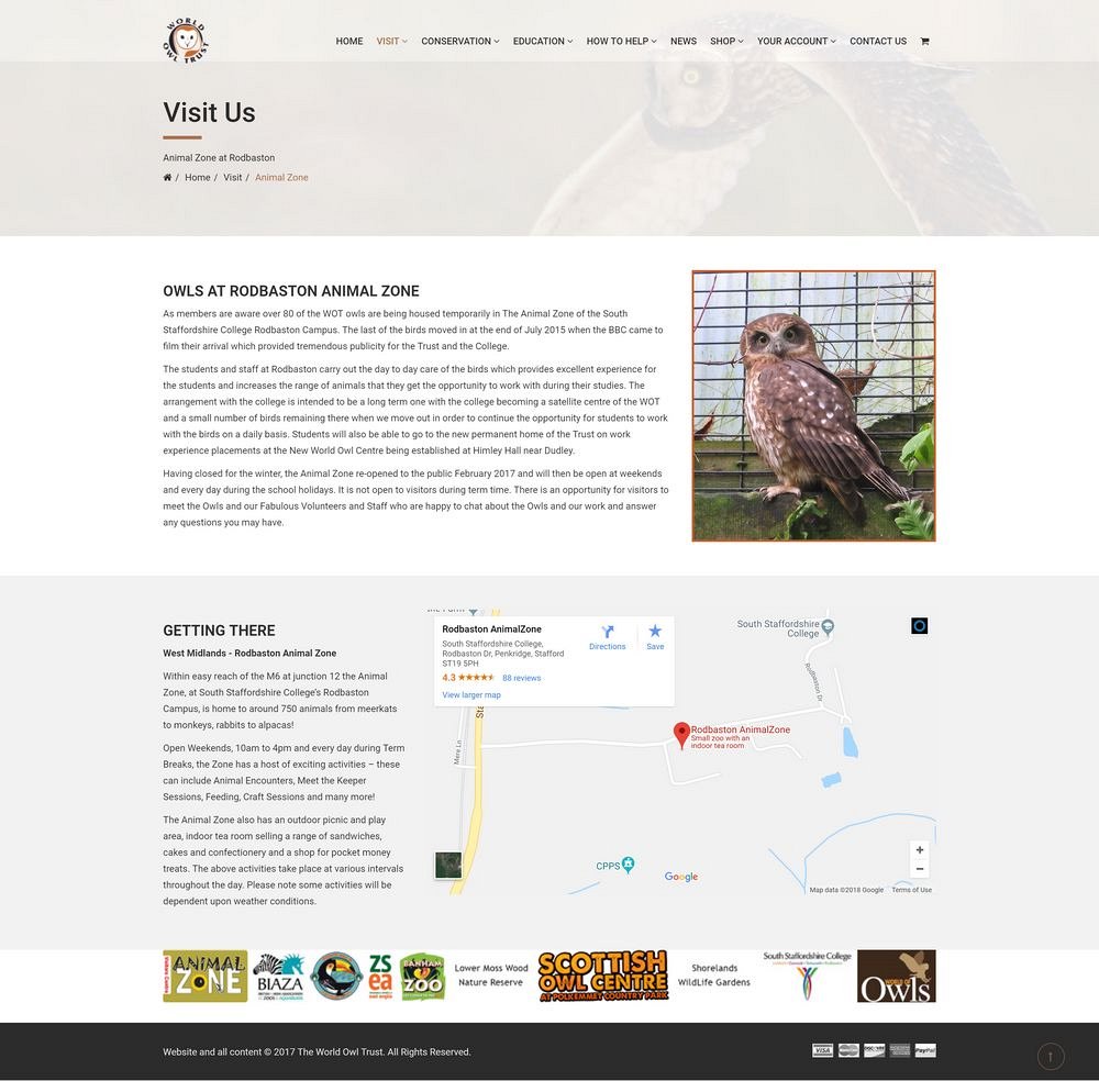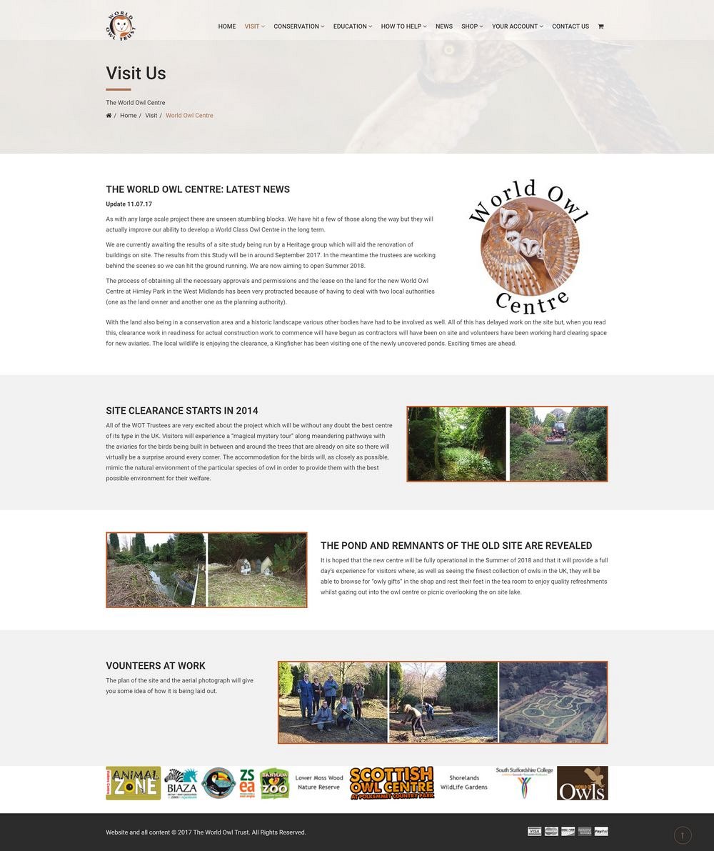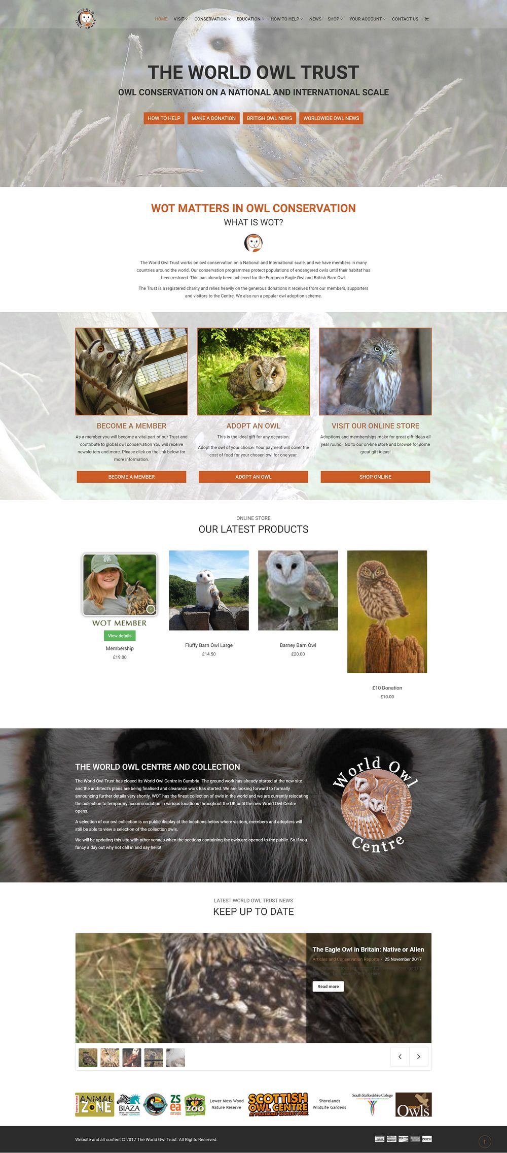Having worked with one of the charity members from a previous website design project, we were excited to help create a new website for the World Owl Trust, merging the information from one old website with the ecommerce platform used on a separate website.