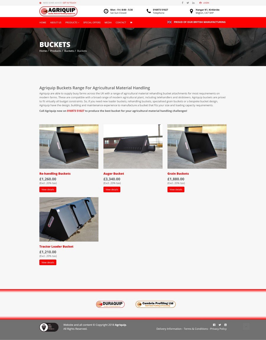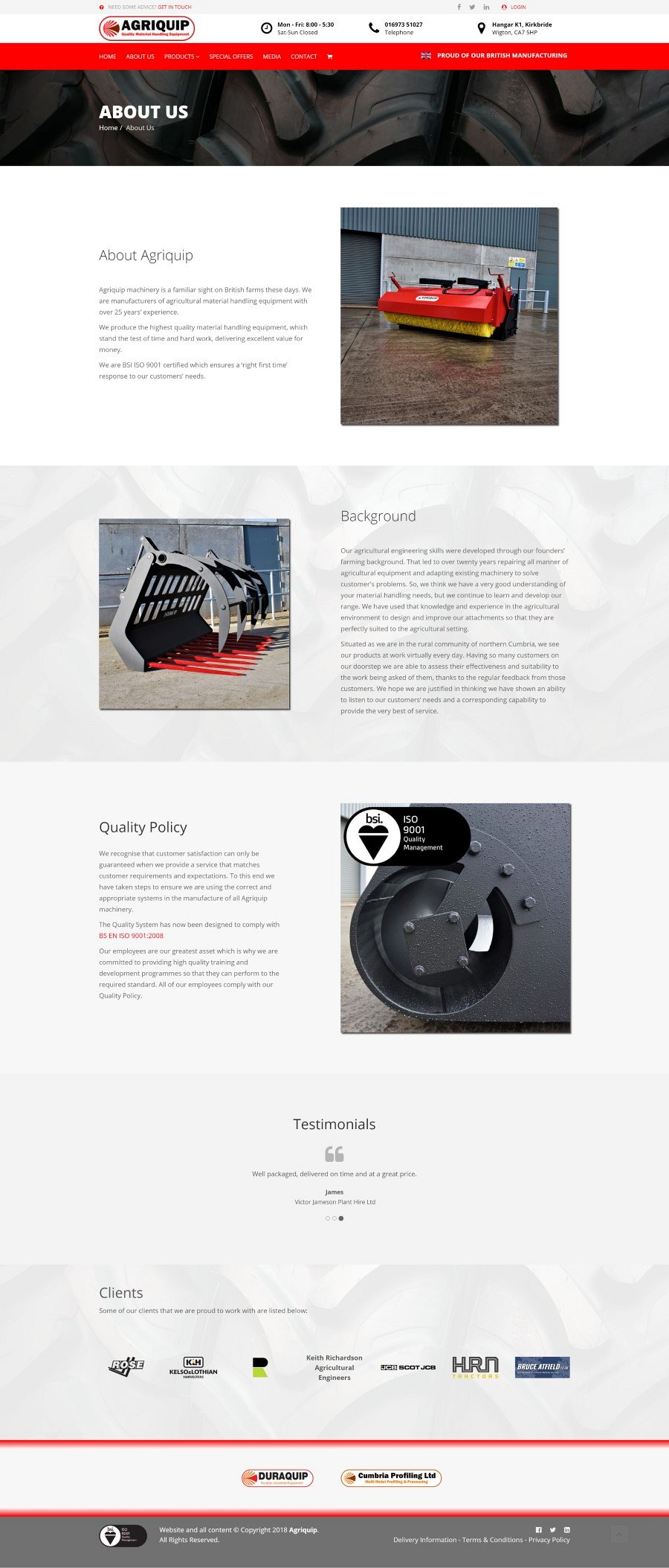The second website to go live from a four-website project, Agriquip presents both product and company information, with e-commerce enabled to allow some of their products to be purchased online.