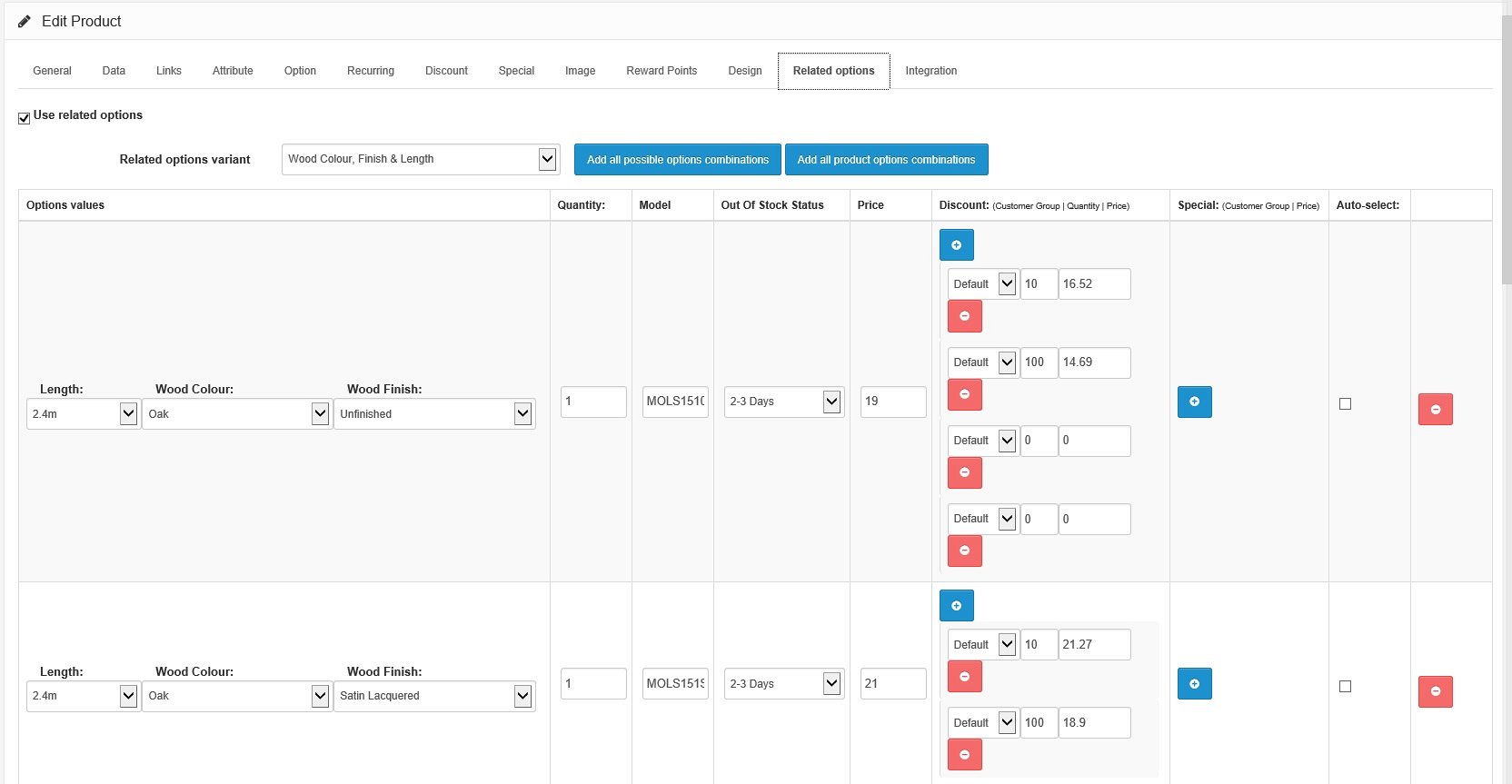 Along with a number of stunning photographs, we were also presented with one of the most complex product option requirements we've seen so far, requiring not only product variations for the usual options of size and colour, but also differing prices for each combination. Further, quantity discounts were required for many of these combinations, on top of shipping prices which varied with certain products as well as by category.