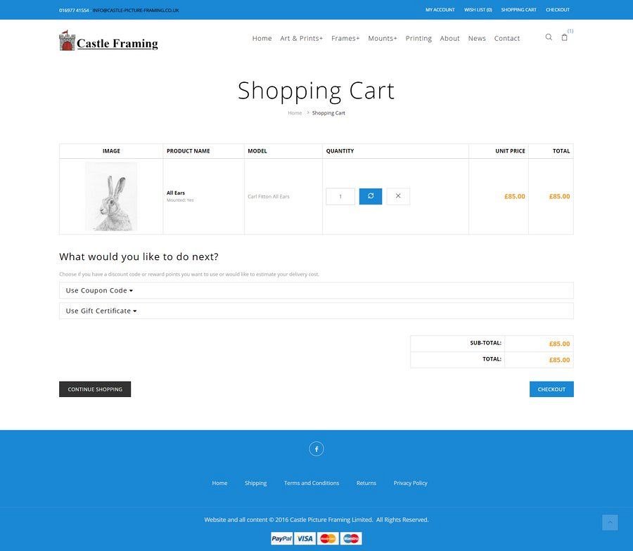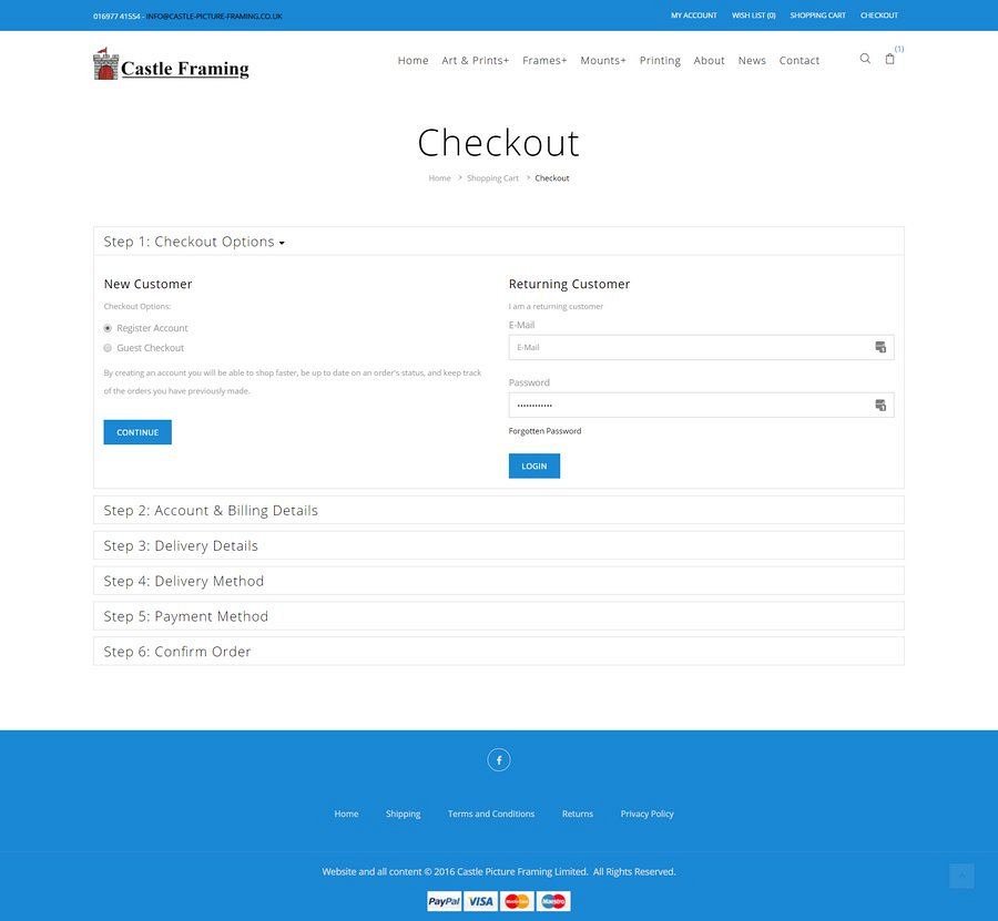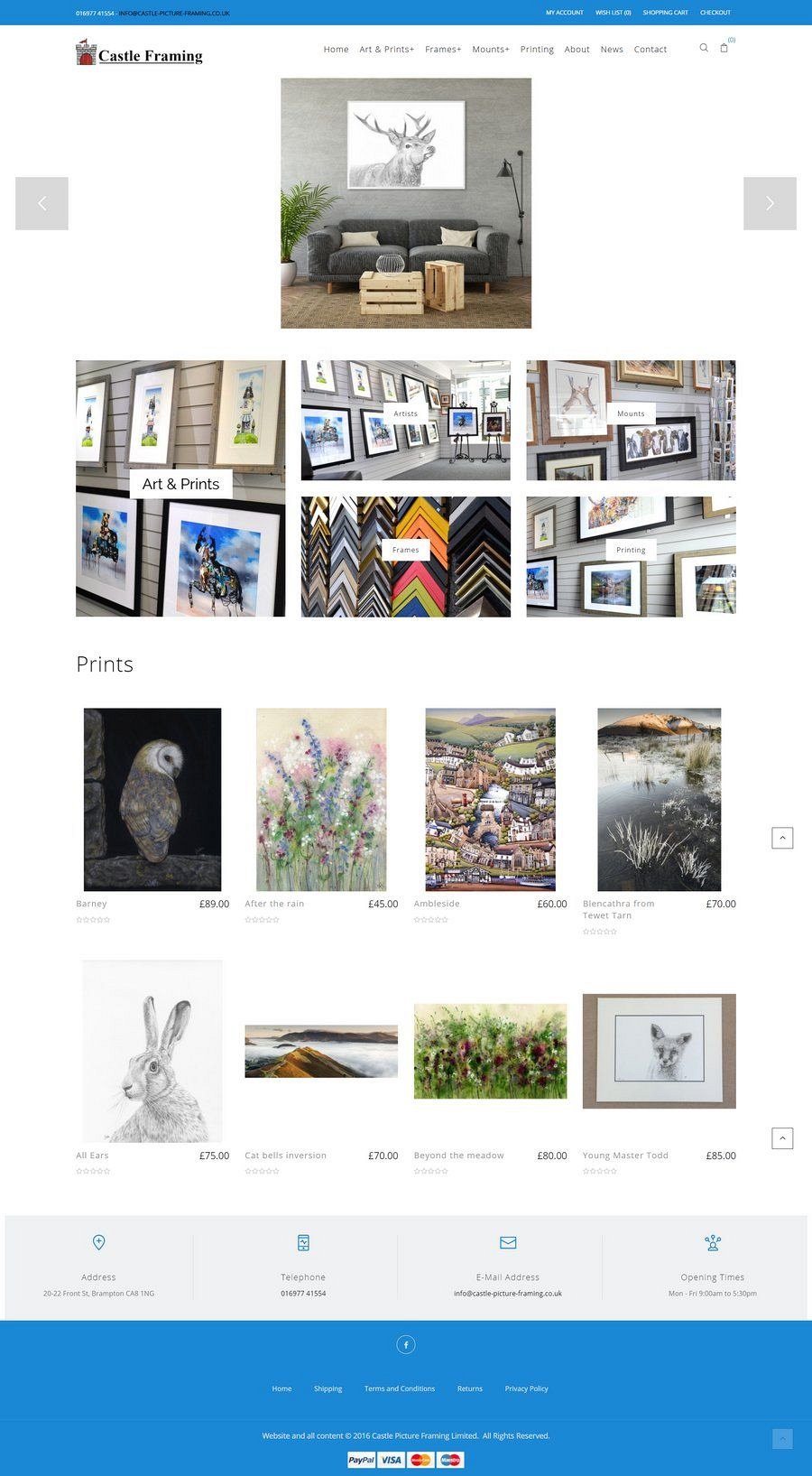 Needing to update a very old website, which had a non-working e-commerce facility, Castle Picture Framing in Brampton asked us to create a brand new website for them to include a range of online store categories and additional information pages.