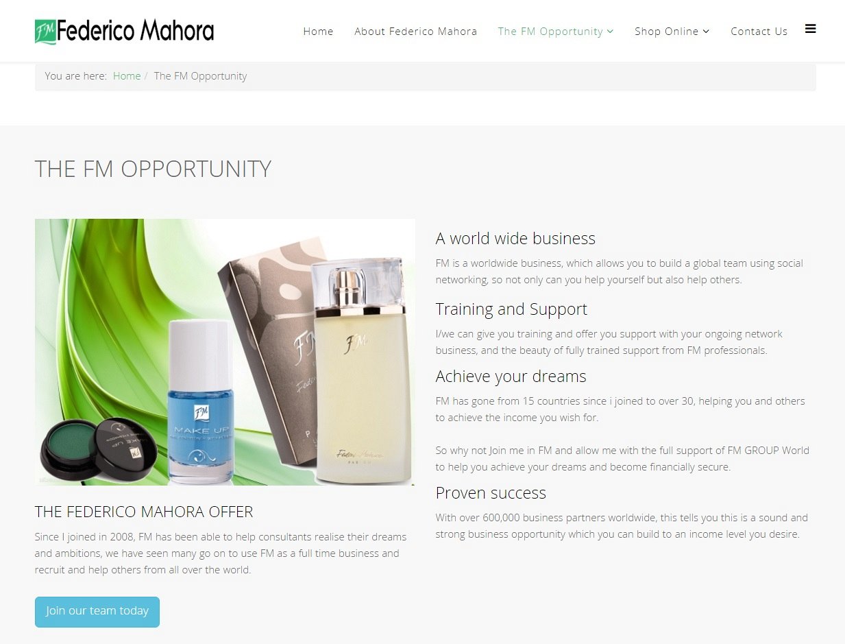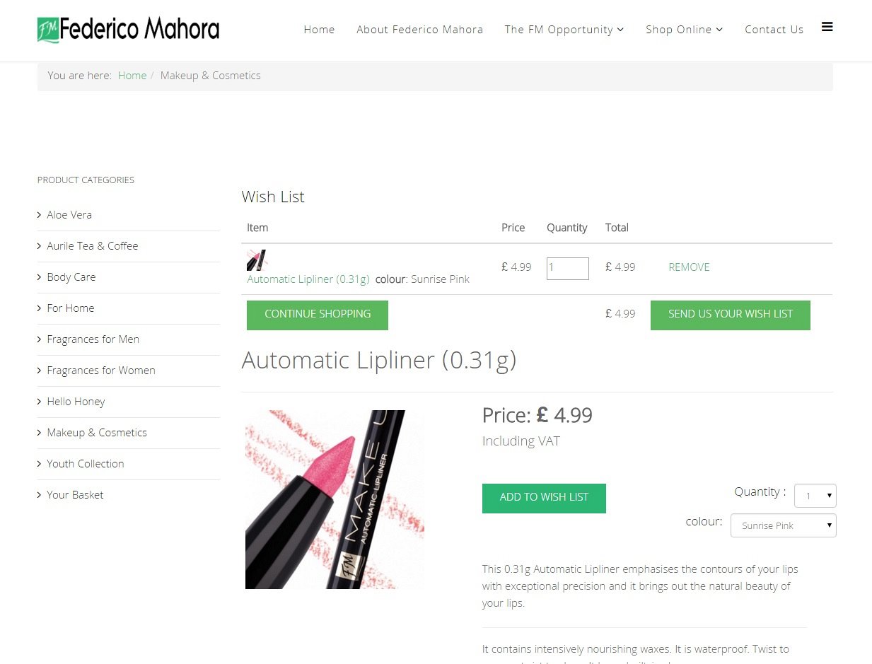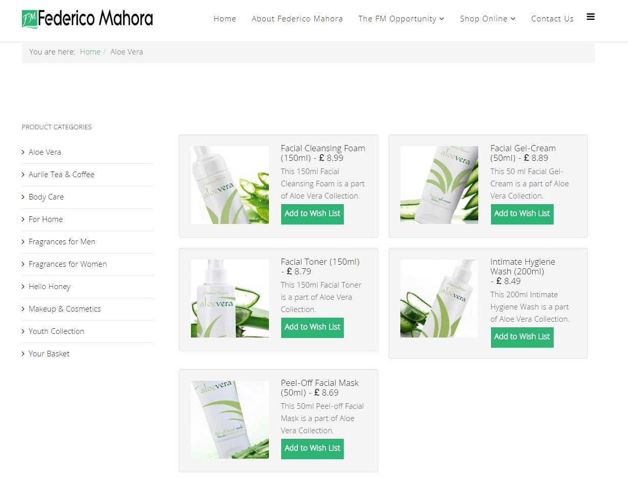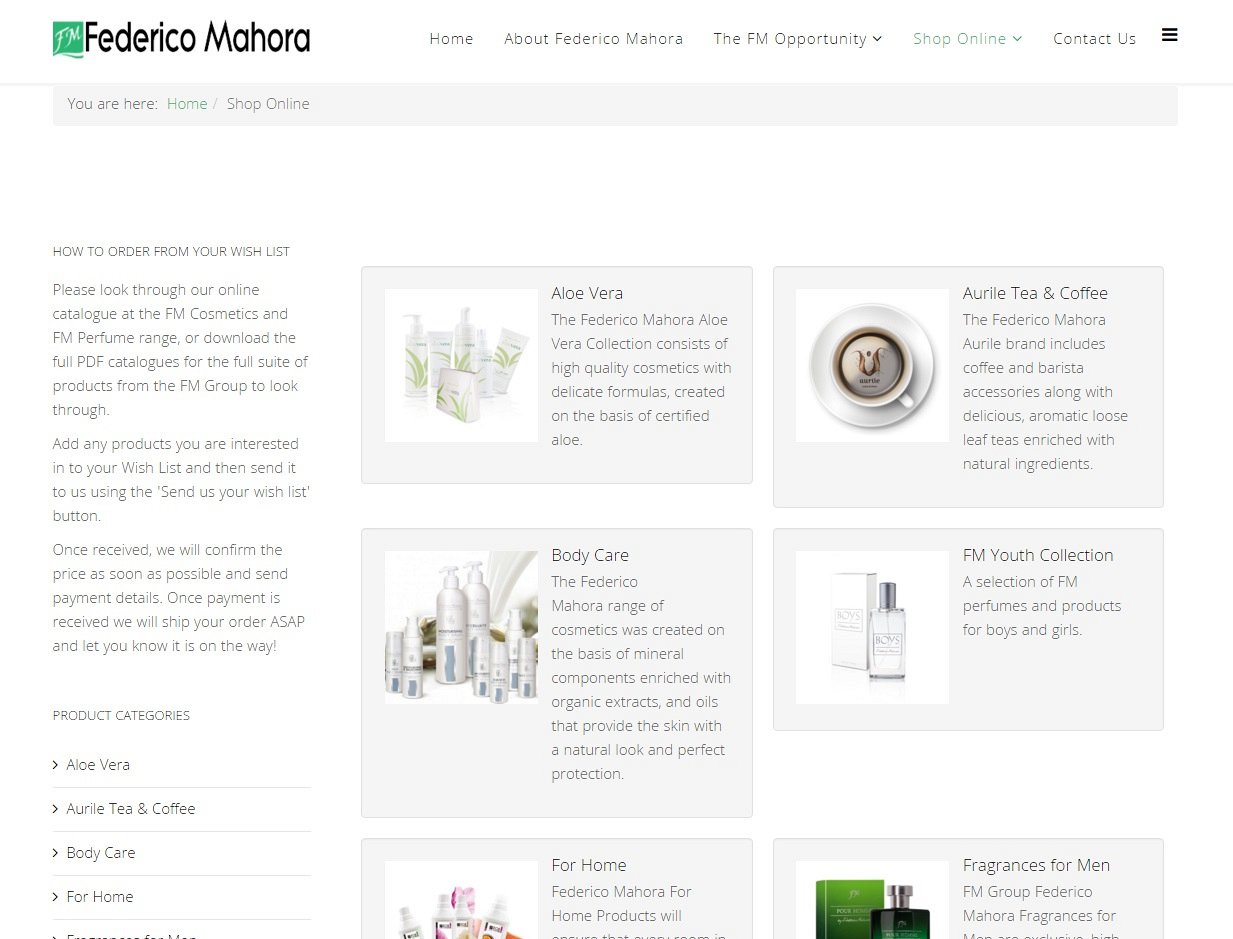 With a really easy to use single page 'checkout' for customers wanting to order FM products, and a stunning website with loads of information about FM and the business opportunity it offers, Larry and Joy have done a great job of adding almost all of the FM catalogue of products to all the categories on the website.
