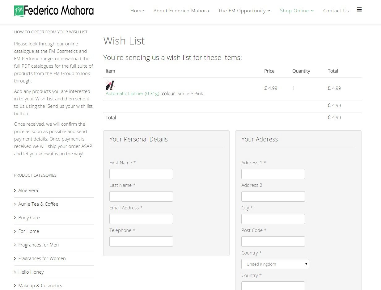 Joy and Larry approached us to create an FM Wish List website for their FM Perfume business.
