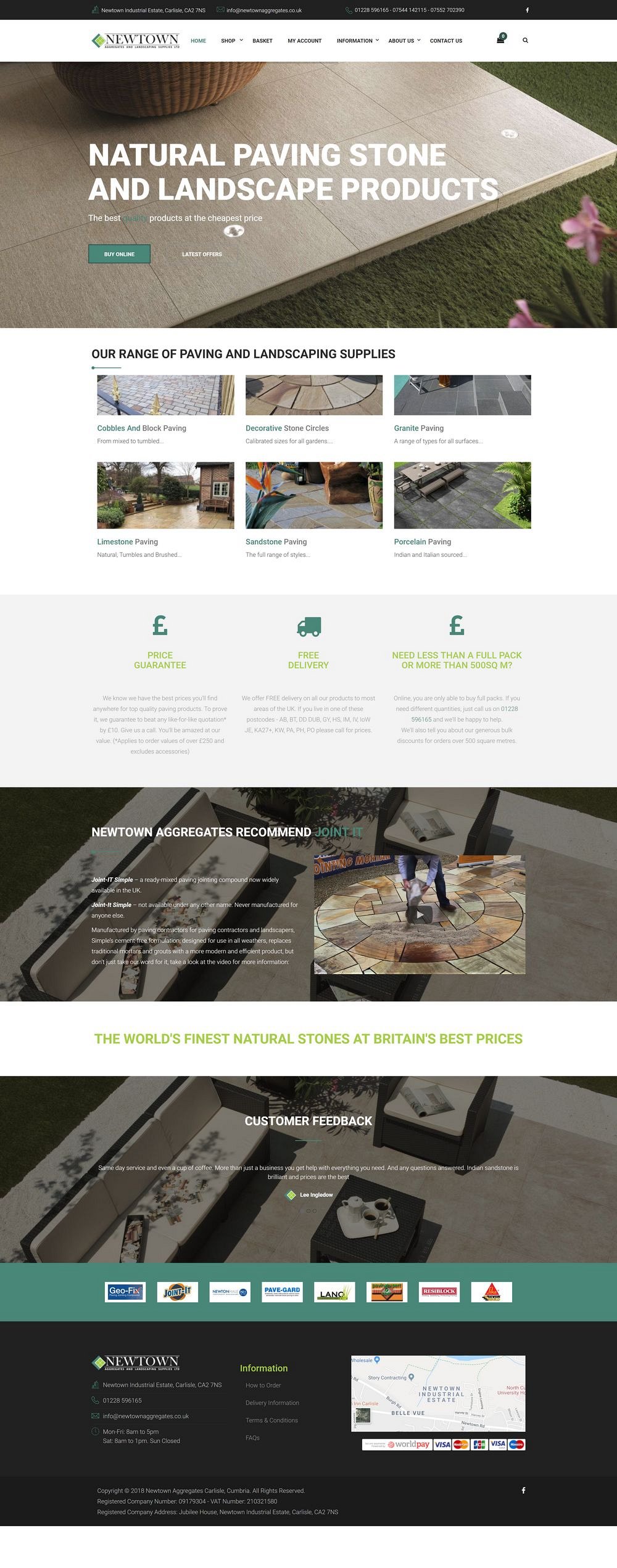 After being recommended to us by our first client, Gardens Transformed, Newtown Aggregates asked us to create a new e-commerce website for their paving and stone supplies business.