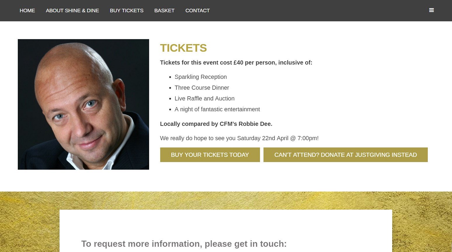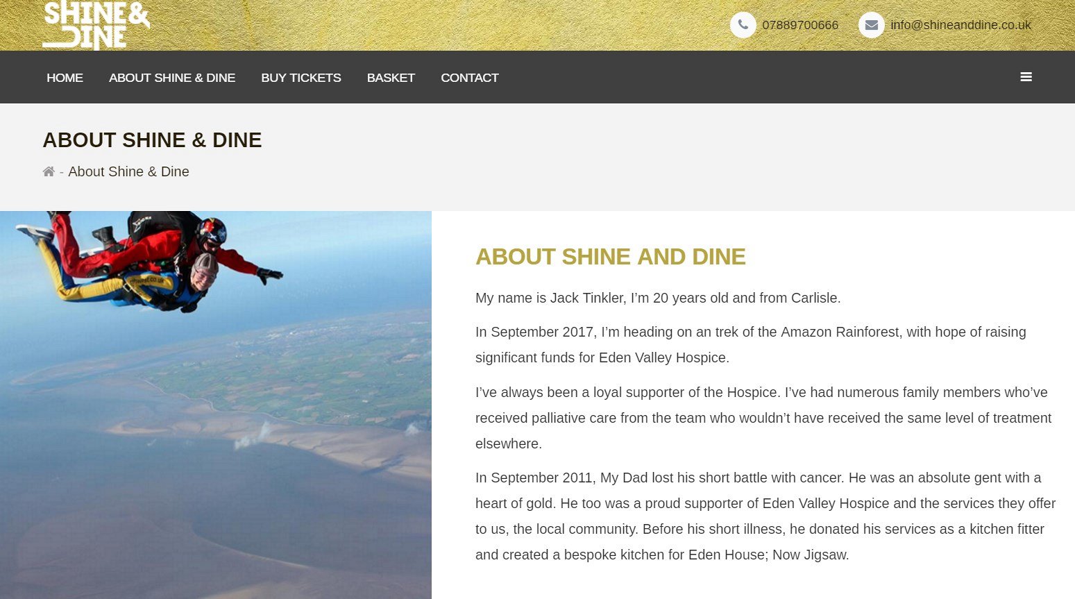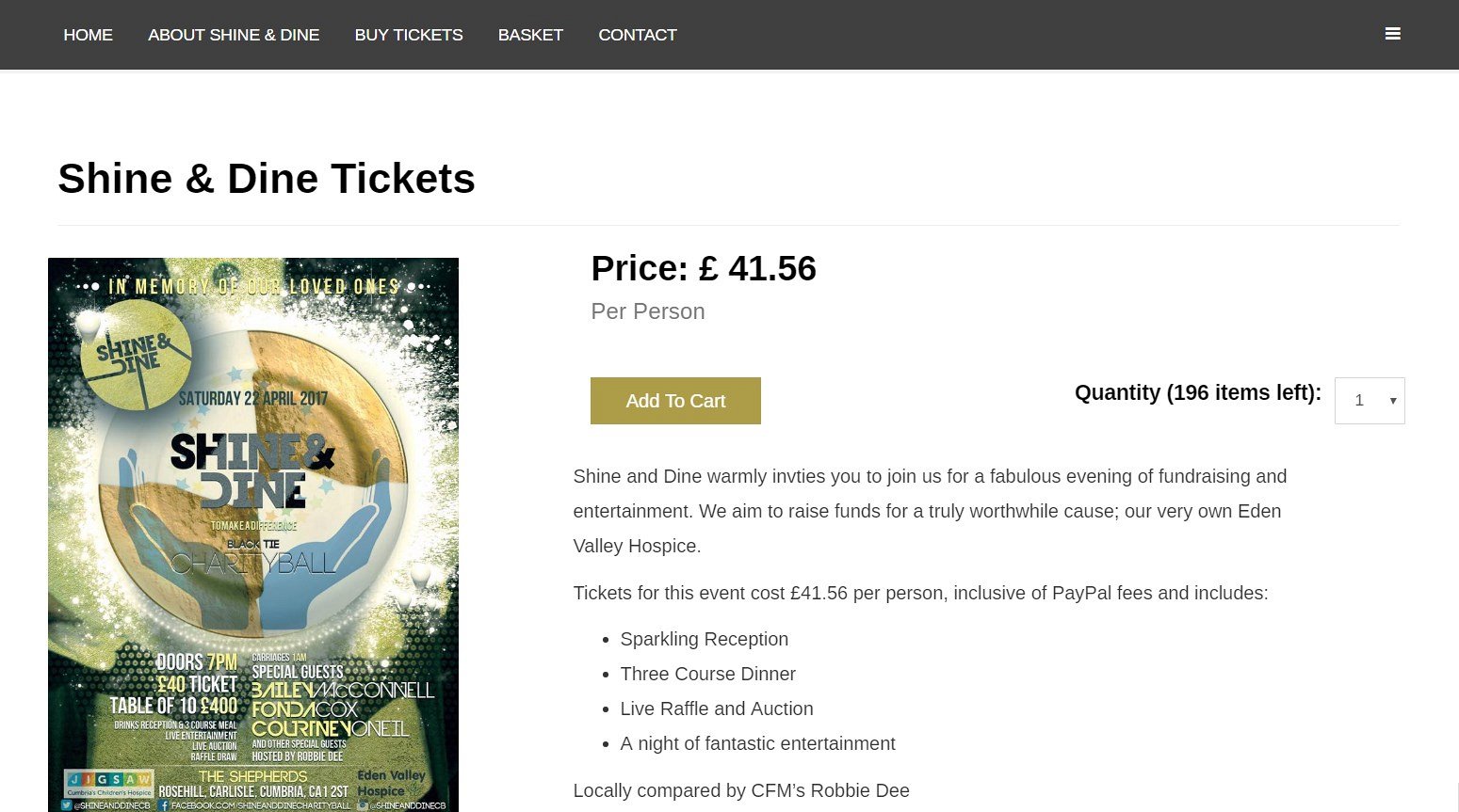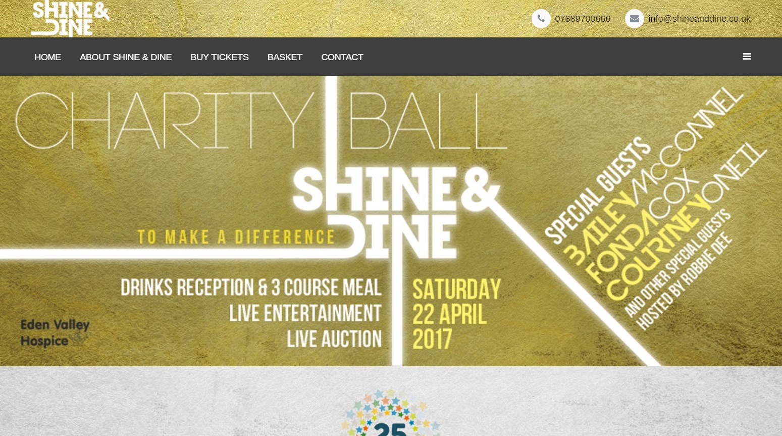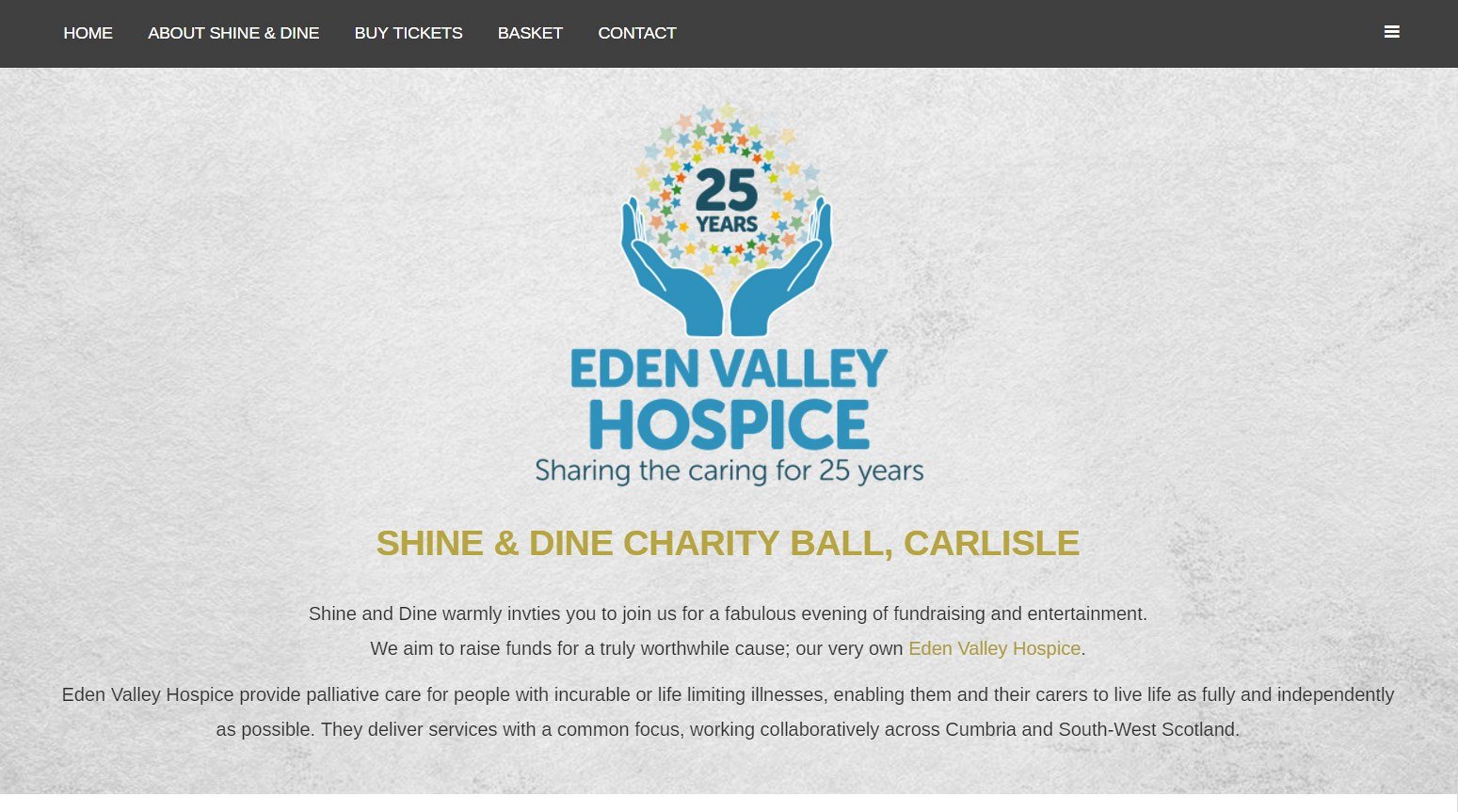 Jack asked us to design a website for his Shine and Dine Charity Ball, which was raising money for a local charity, Eden Valley Hospice. He was looking for a website to advertise the event and also sell tickets online directly from the website.