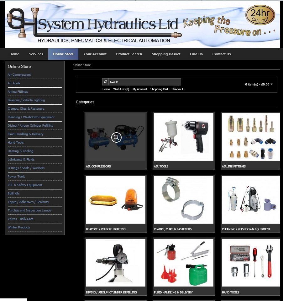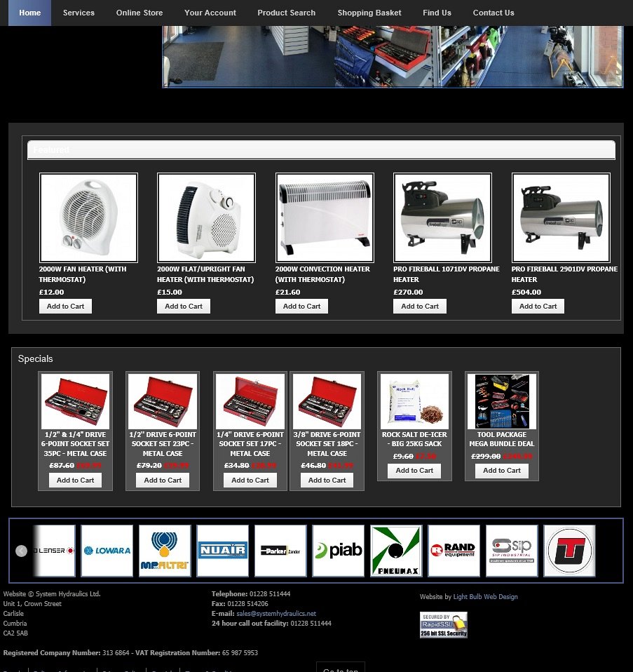 The brief was to create a brand new e-commerce website, to incorporate information about the company and its services, as well as a number of online contact forms to cover enquires for servicing, sales and general enquiries. Where required, the forms allow website visitors to attach photographs and each form is setup to go to the appropriate e-mail contact within System Hydraulics.