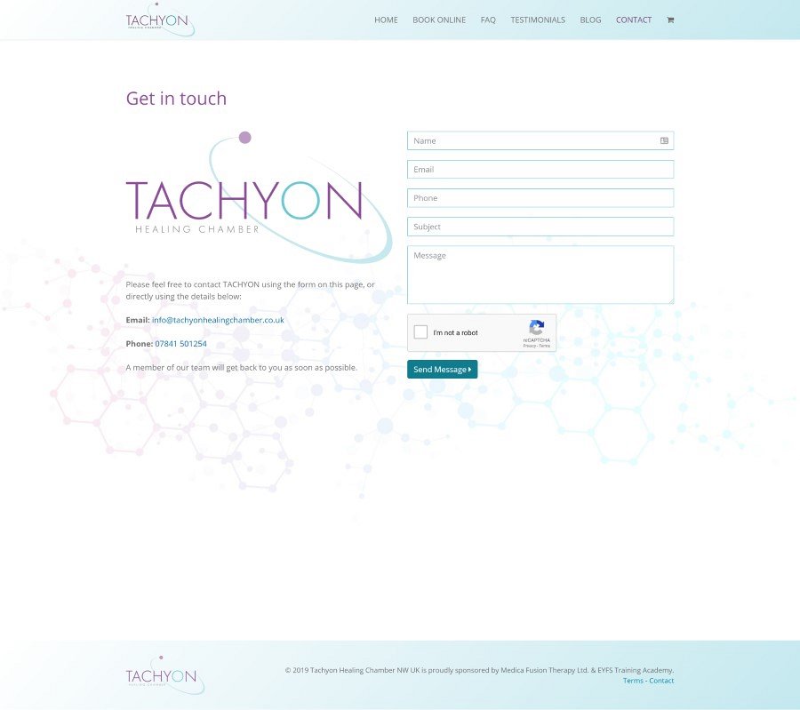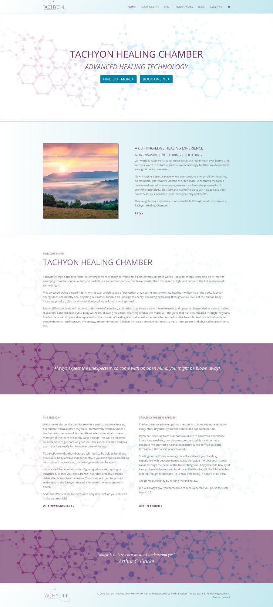 Linked to one of our existing clients due to sharing business offices, Medica Health asked us to create a new website for their Tachyon Healing Chamber, to allow for online booking of the chamber, with payments taken through the website via PayPal.