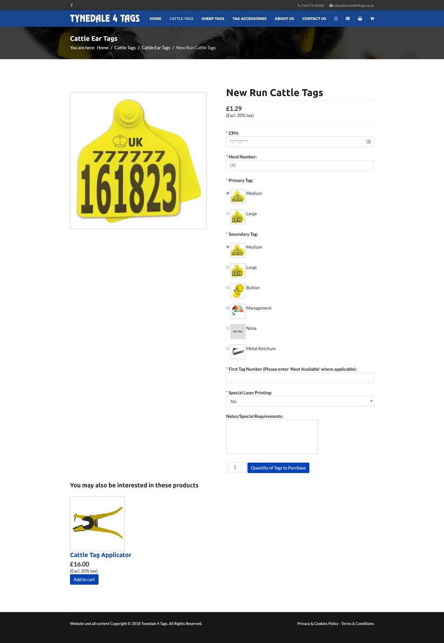 After their current website design company ceased trading, Tynedale4Tags asked us to create a new e-commerce website for their sheep and cattle tag business, letting customers browse and buy a range of tags and associated products.
