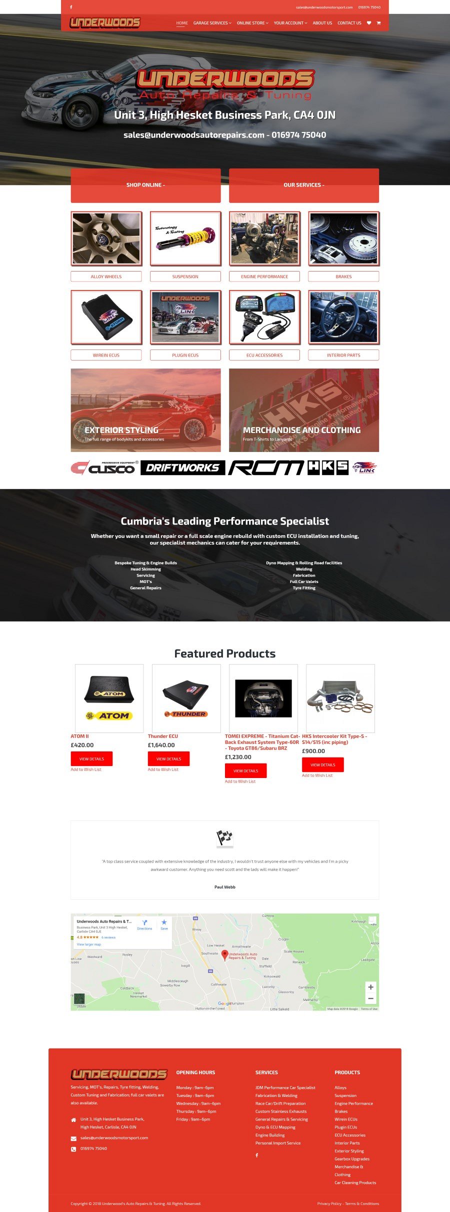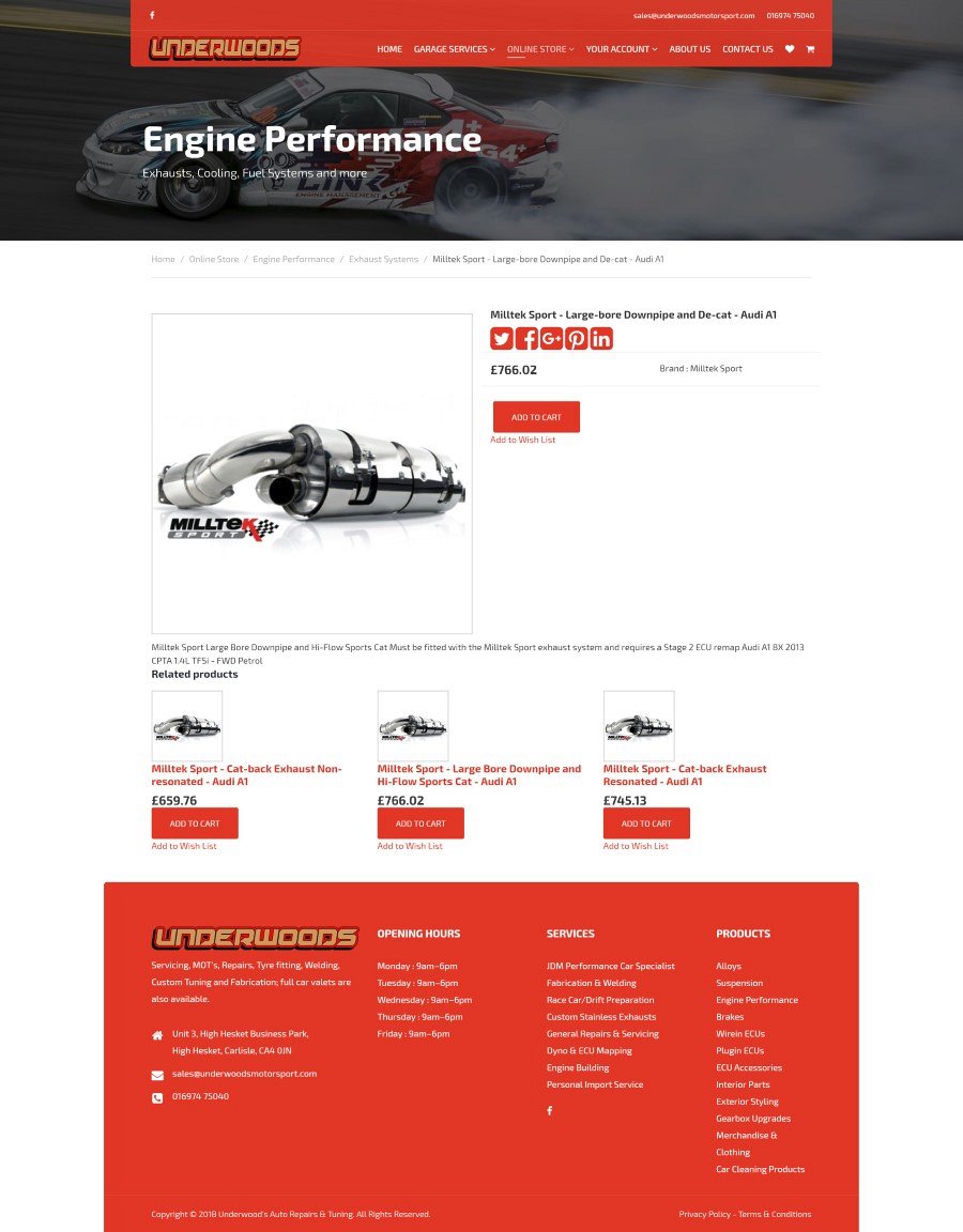 Underwoods Motorsport got in touch and asked us to create a new website for their car tuning/garage business, which also allowed for online sales of a range of tuning and motorsport products.